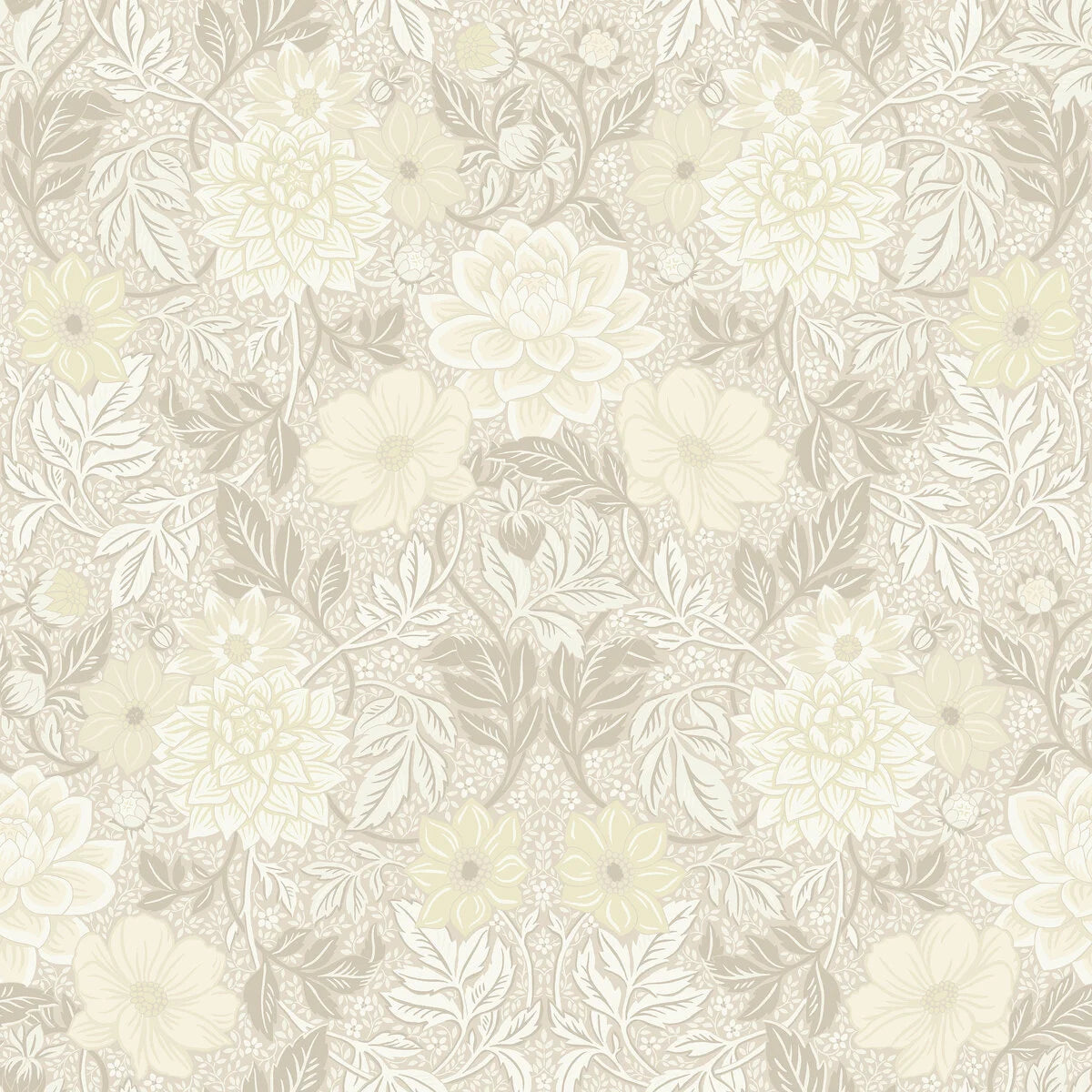 Papierová flizelínová tapeta s rastlinným vzorom DAHLIA GARDEN teplá biela s béžovou