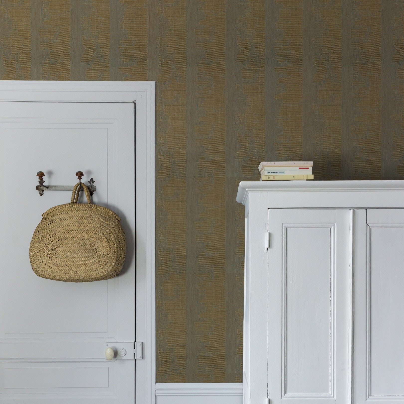 Tapeta štrukturálna s metalickými odrazmi NÉRIKOMI - VERT DE GRIS/DORÉ zlatá so zelenou