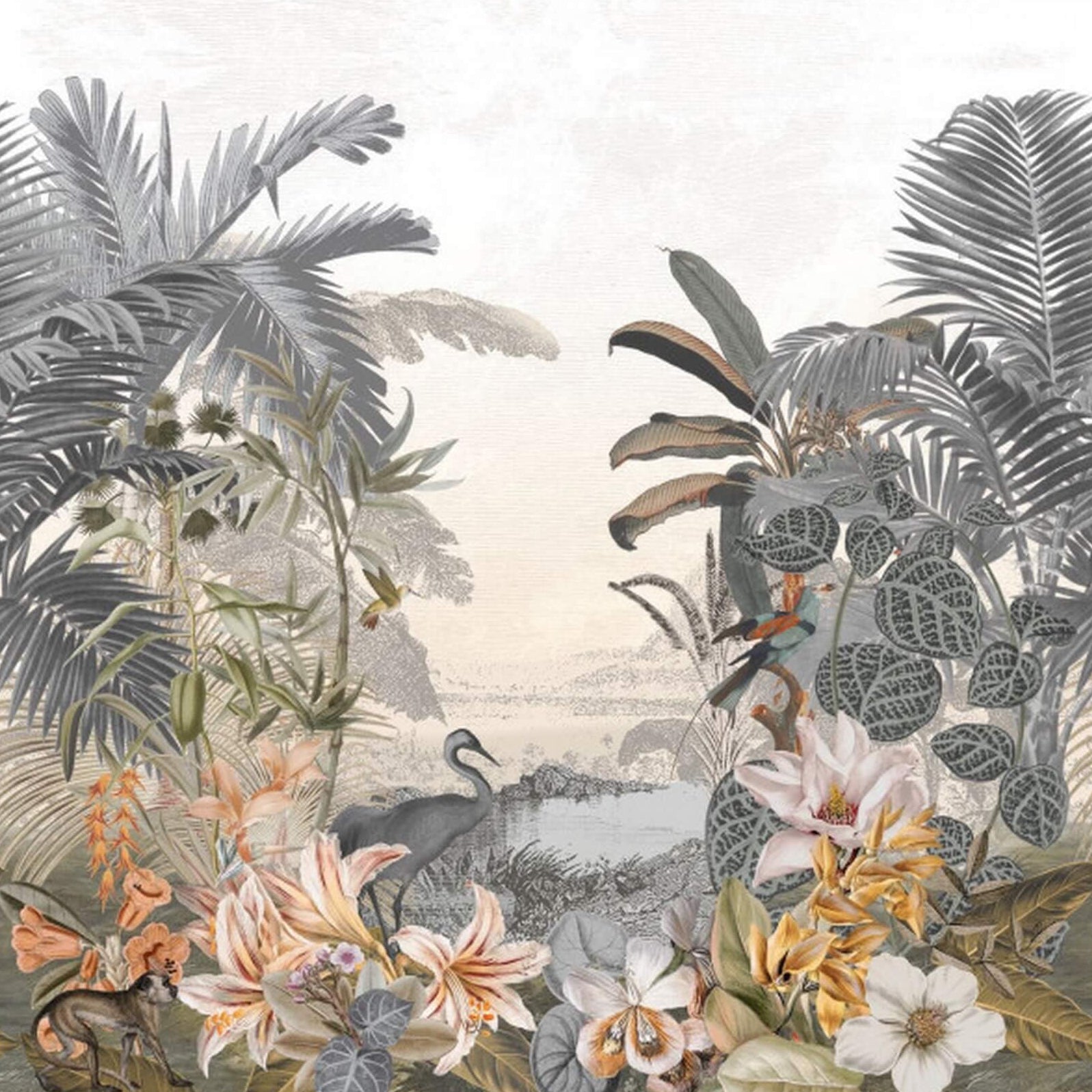 Textilná nástenná dekorácia s exotickou krajinou PARAIBA, tlmená modrá s béžovou