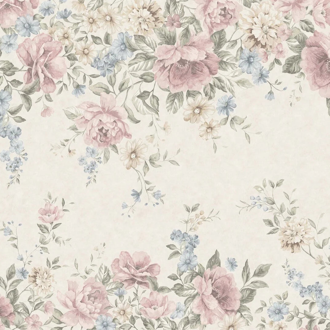 Múrova tapeta s rastlinným motívom kvetov FLOWER GARDEN krémová s ružovou