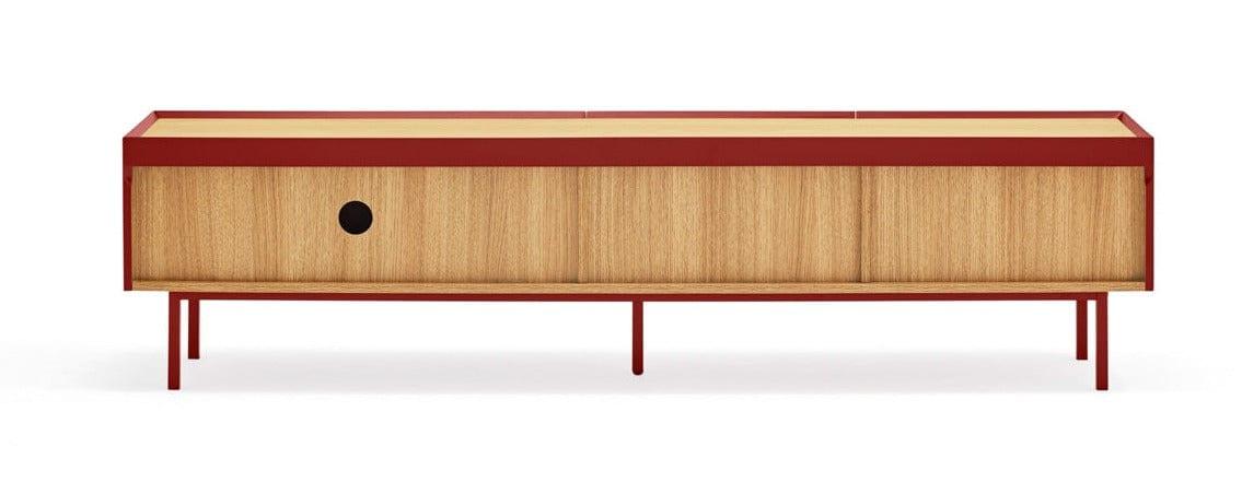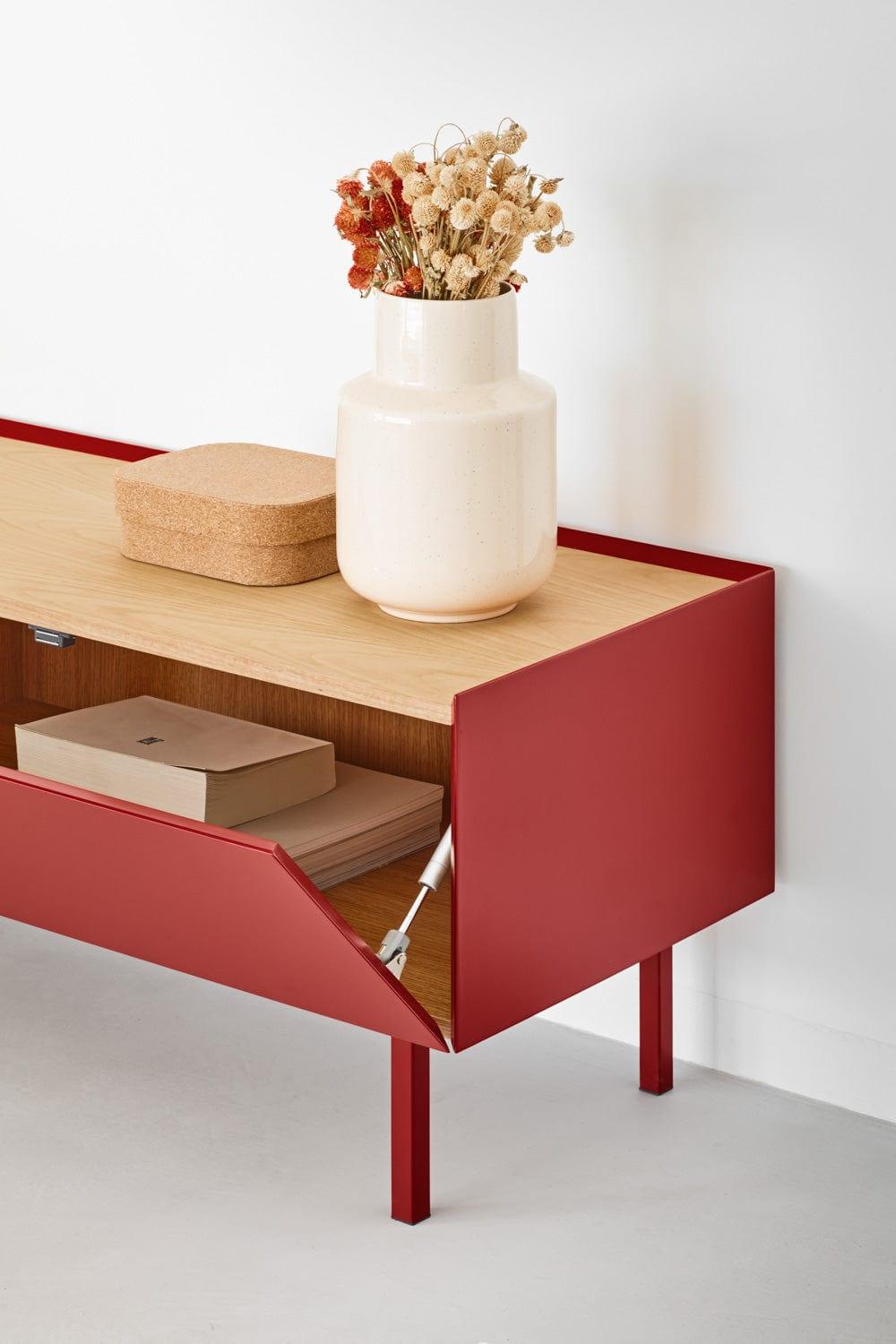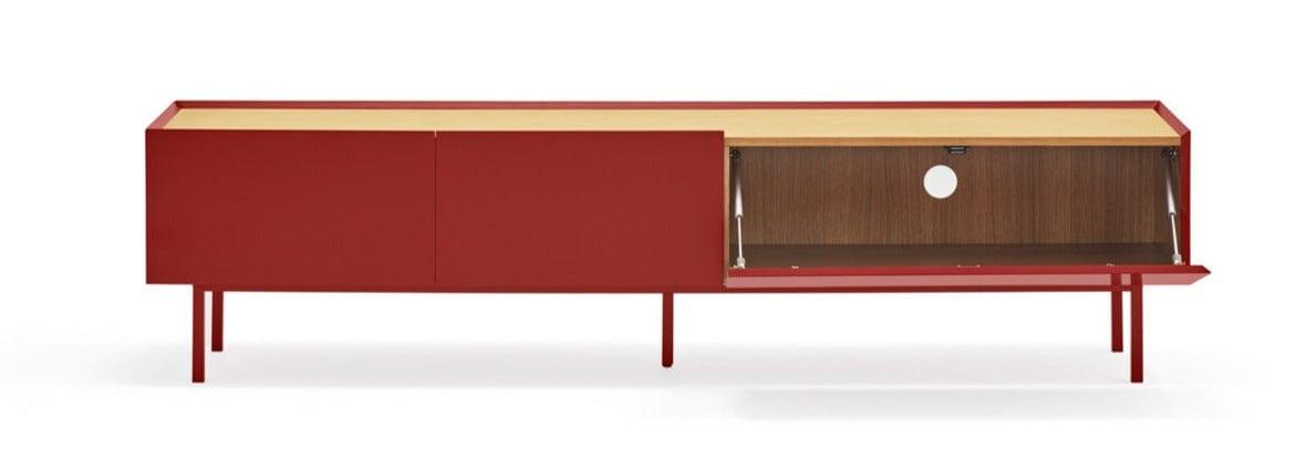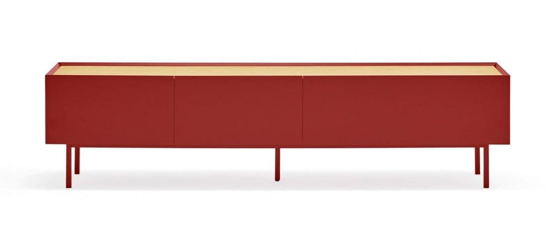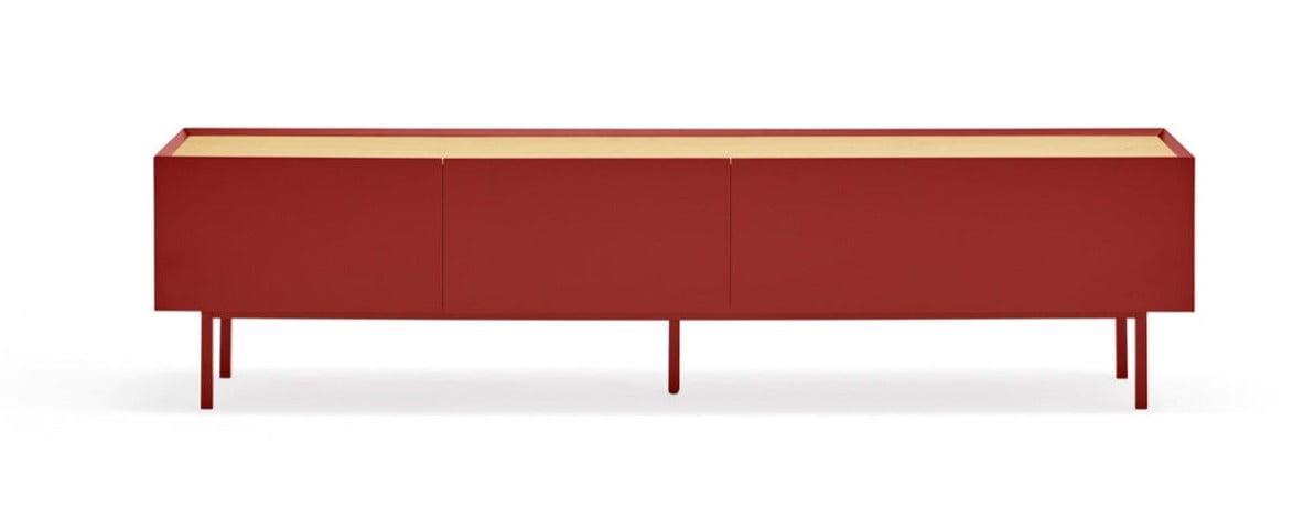 Pojemna i efektowna — taka właśnie jest szafka RTV Arista. Połączenie frontów w kolorze czerwonym oraz drewnianego blatu idealnie się ze sobą komponuje. Elegancka konstrukcja zachowuje prostotę oraz minimalizm wyrazu. Dzięki zastosowaniu wysokiej jakości materiałów szafka pod telewizor Arista jest wytrzymała oraz stabilna.