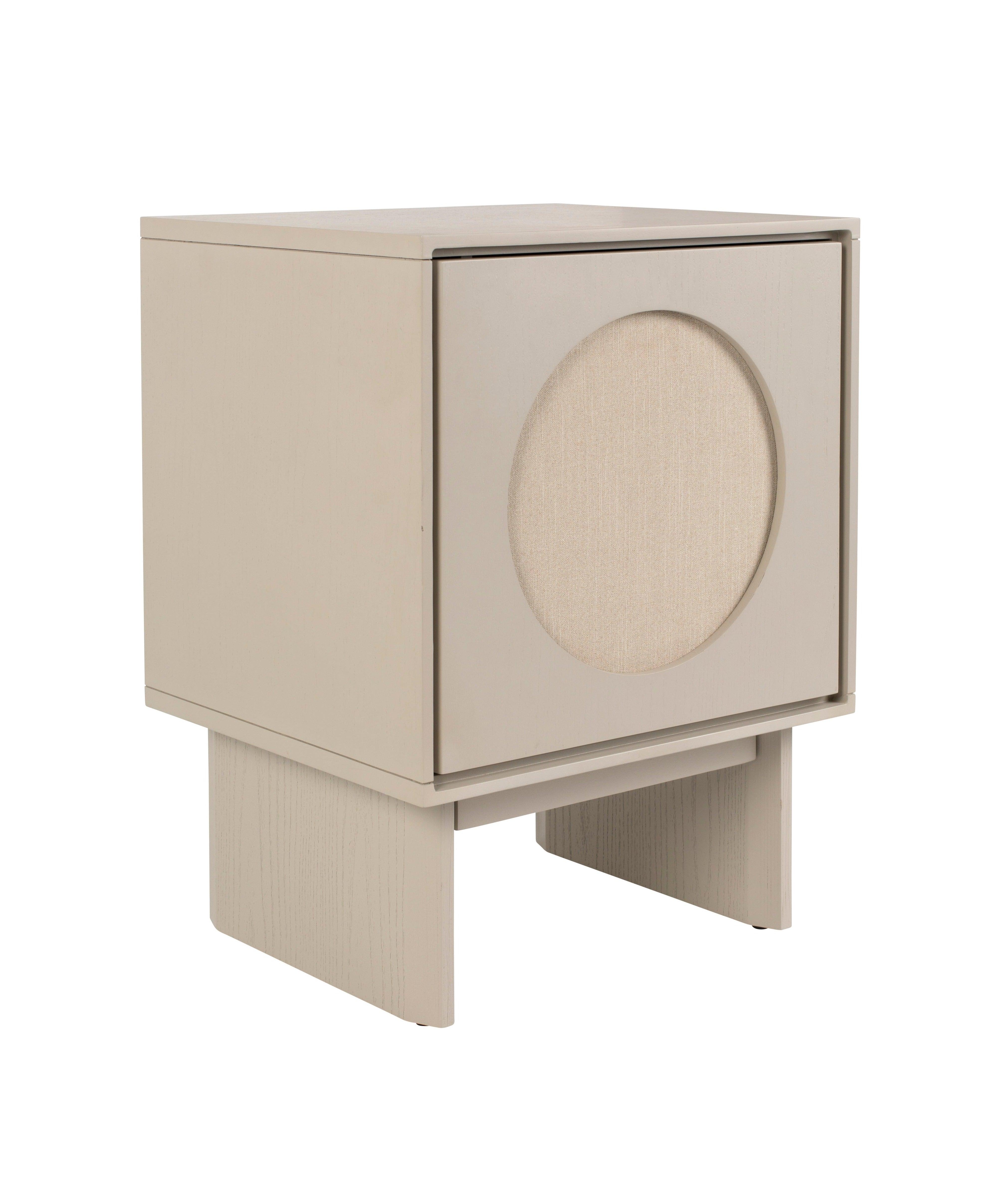 Skriňa Twin zdobí mäkký, textilný kruh. Priestranné priehradky s poličkou ponúkajú miesto na uskladnenie potrebných vecí. Štíhle nohy zabezpečujú stabilitu a natierané drevo podčiarkuje prirodzenú krásu skrine.