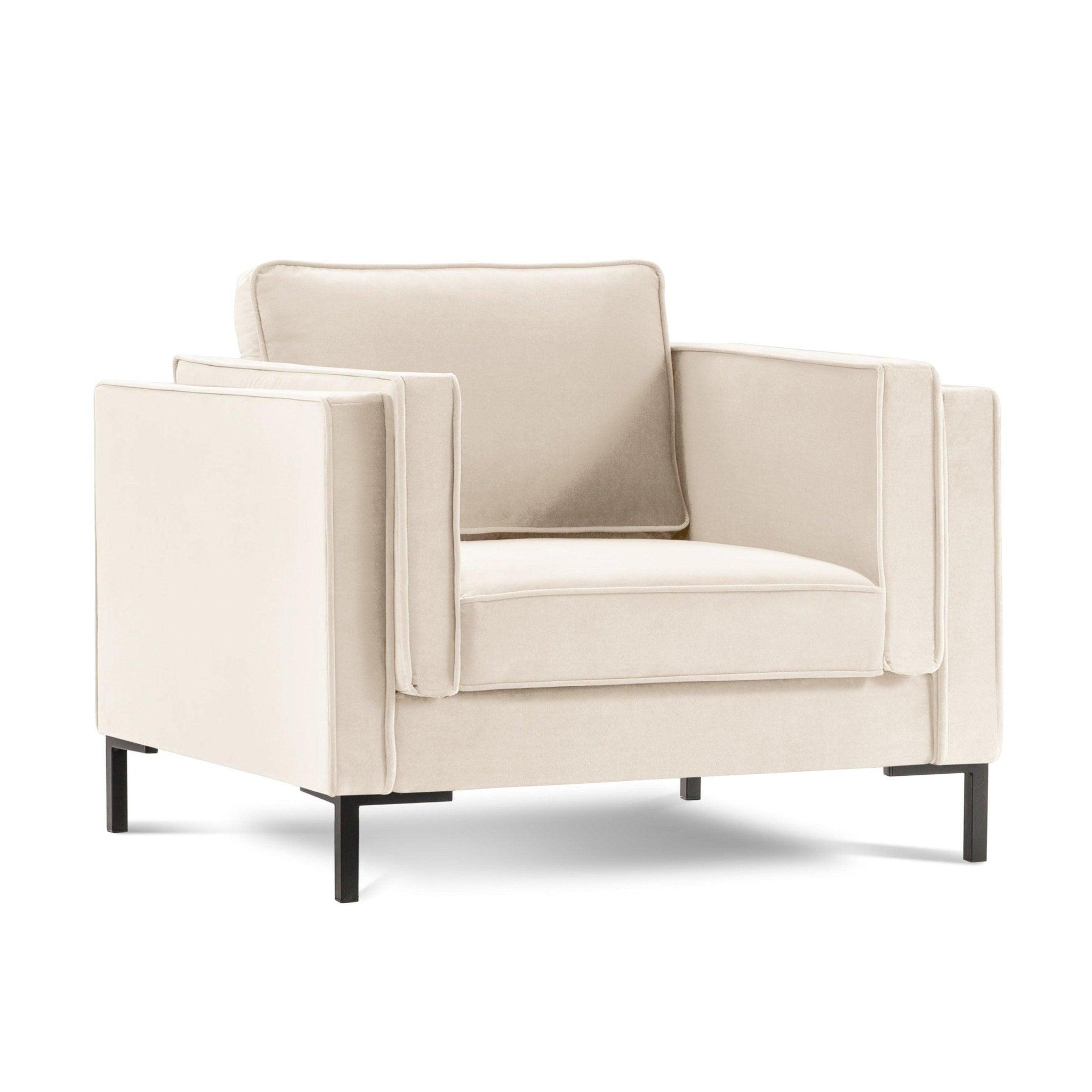 Sametové kreslo LUIS béžové s čiernym podstavcom