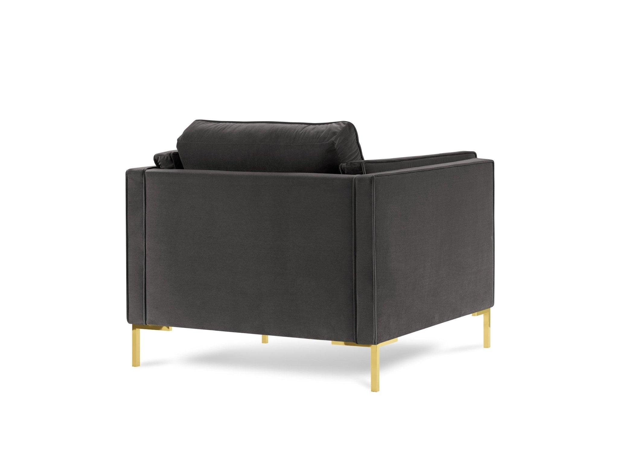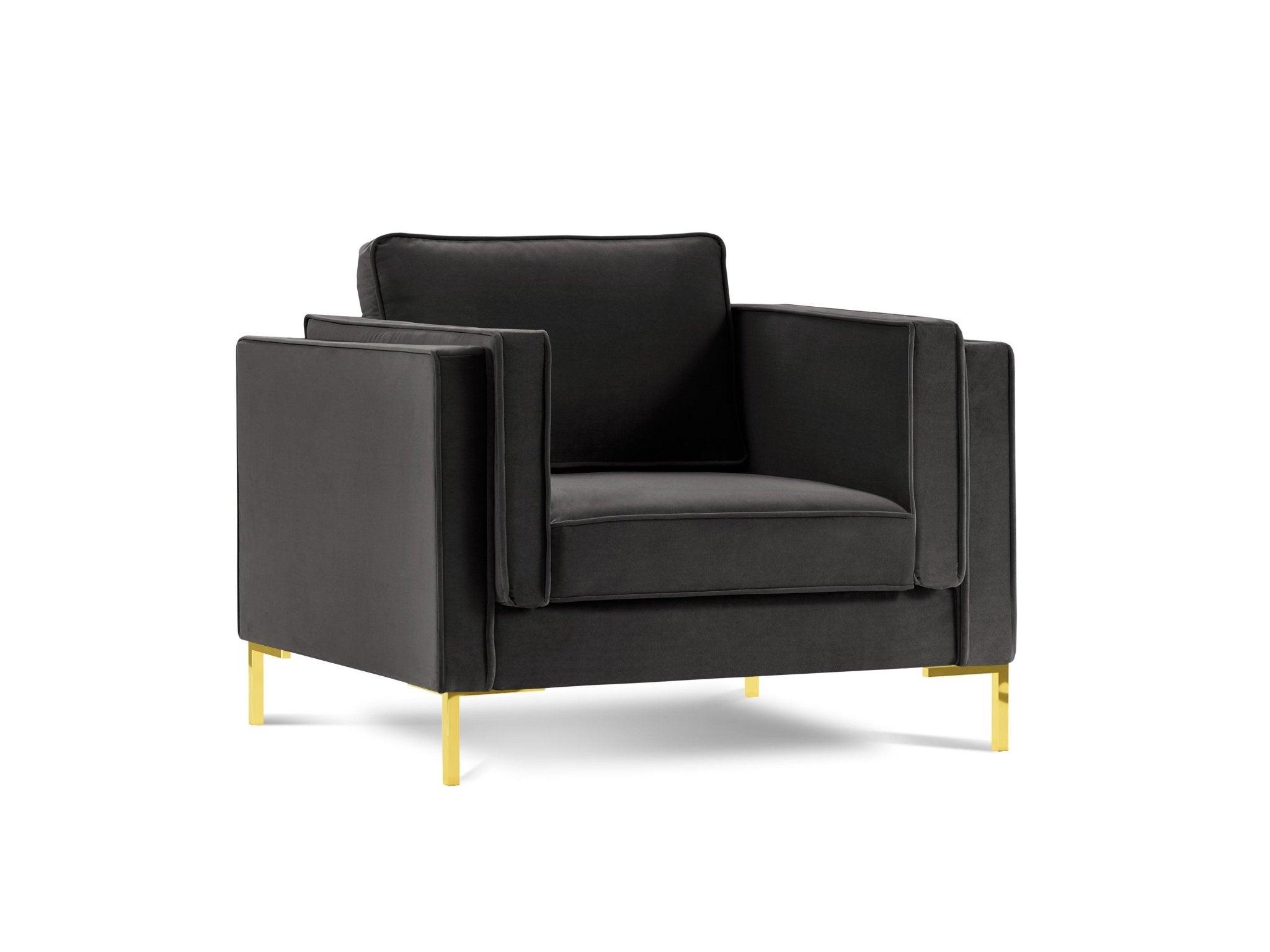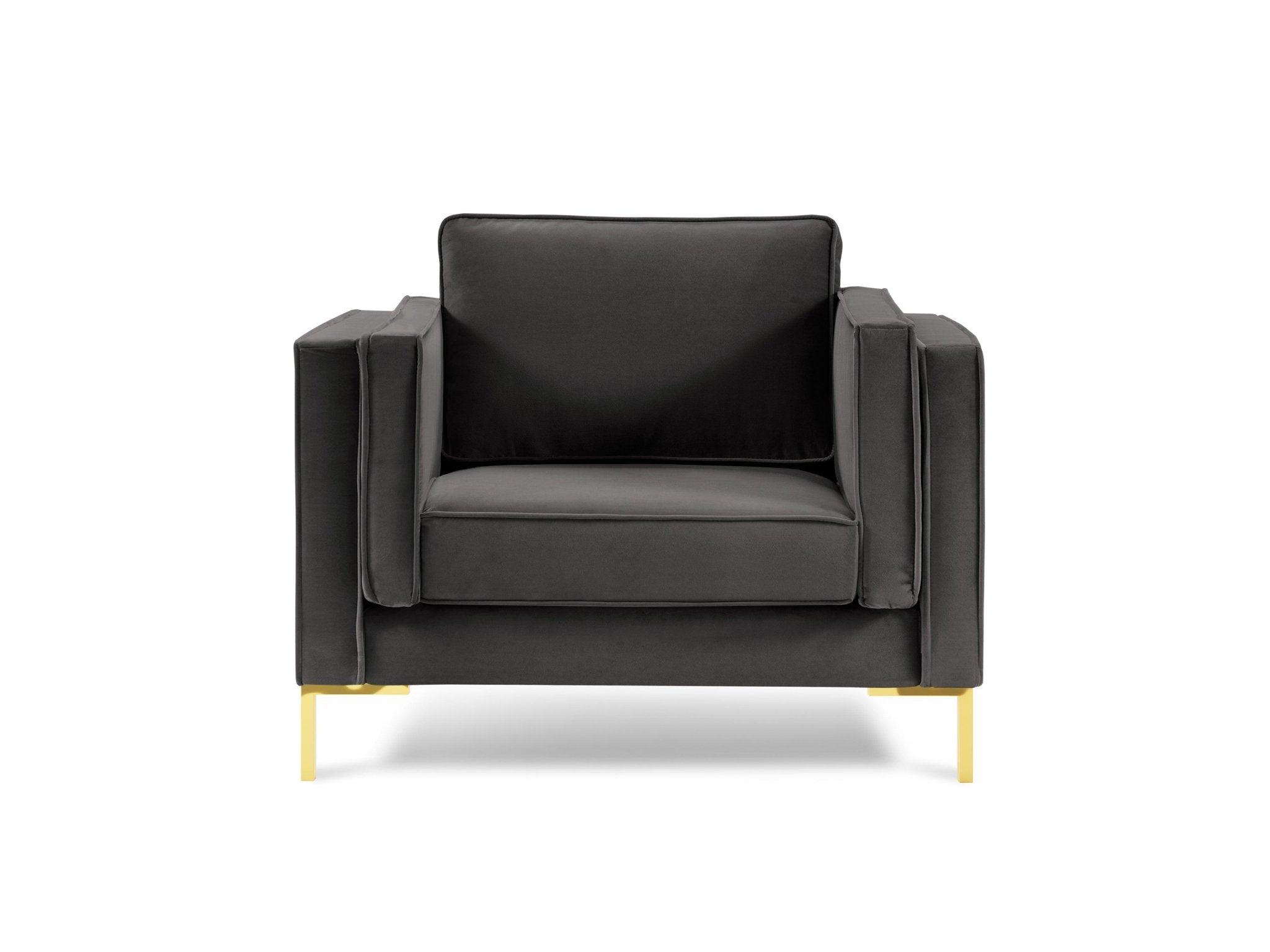 Sametové kreslo LUIS tmavosivé so zlatým podstavcom