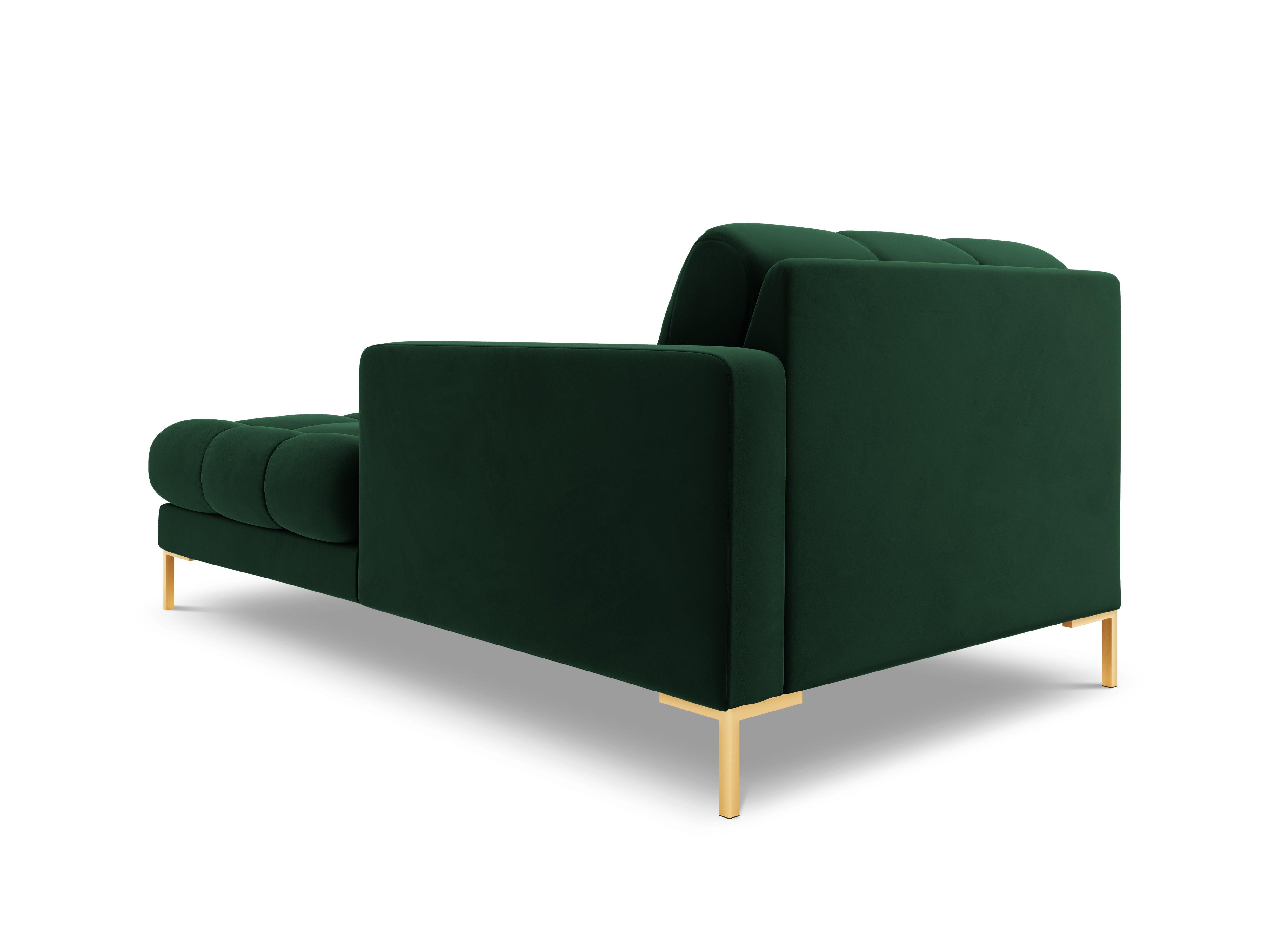 Szezlong zamatový pravostranný BALI fľašková zeleň so zlatým podstavcom