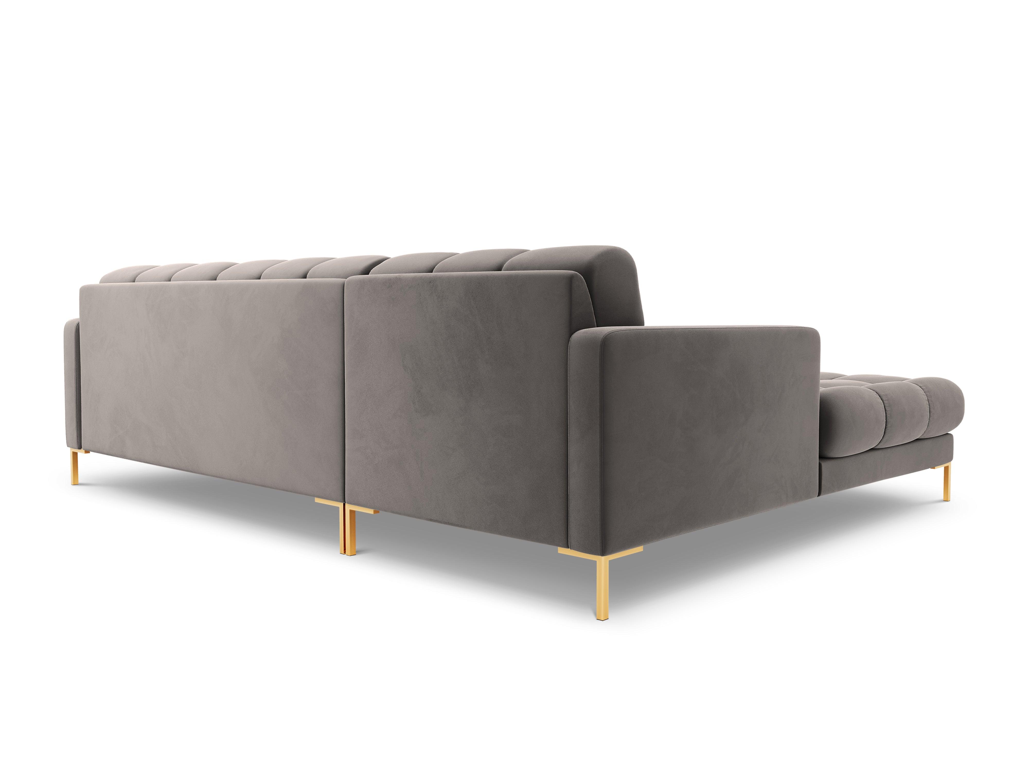 Sametový rohový gauč BALI svetlosivý s zlatým podstavcom