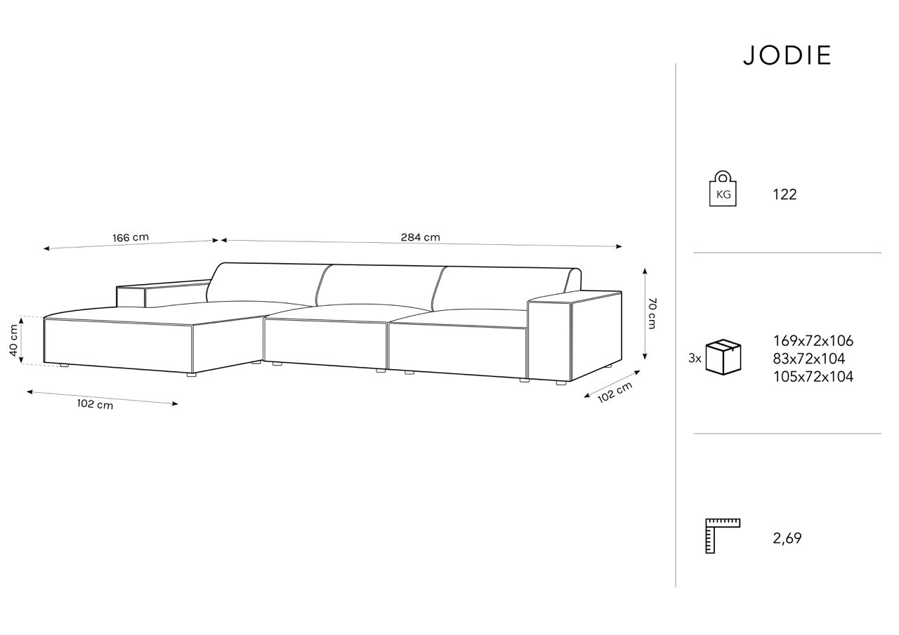 Jodie je pohodlná rohová sedačka pre štyri osoby, ideálna do odpočinkového priestoru. Táto sedačka má elegantný a moderný dizajn, ktorý prinesie do vášho interiéru štýl a harmóniu.