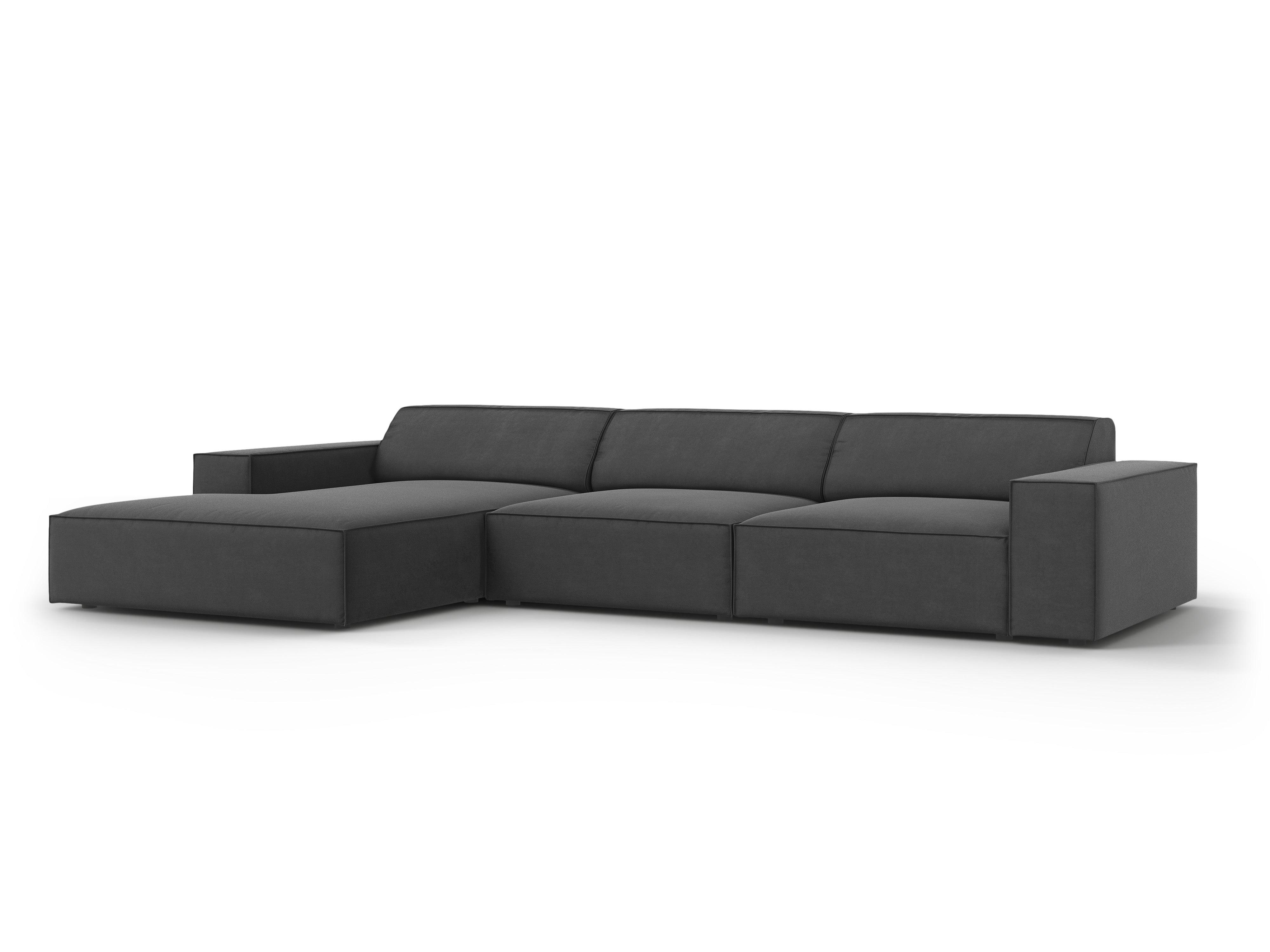 Sedačka z jemného zamatového materiálu ľavostranná pre 4 osoby JODIE tmavosivá