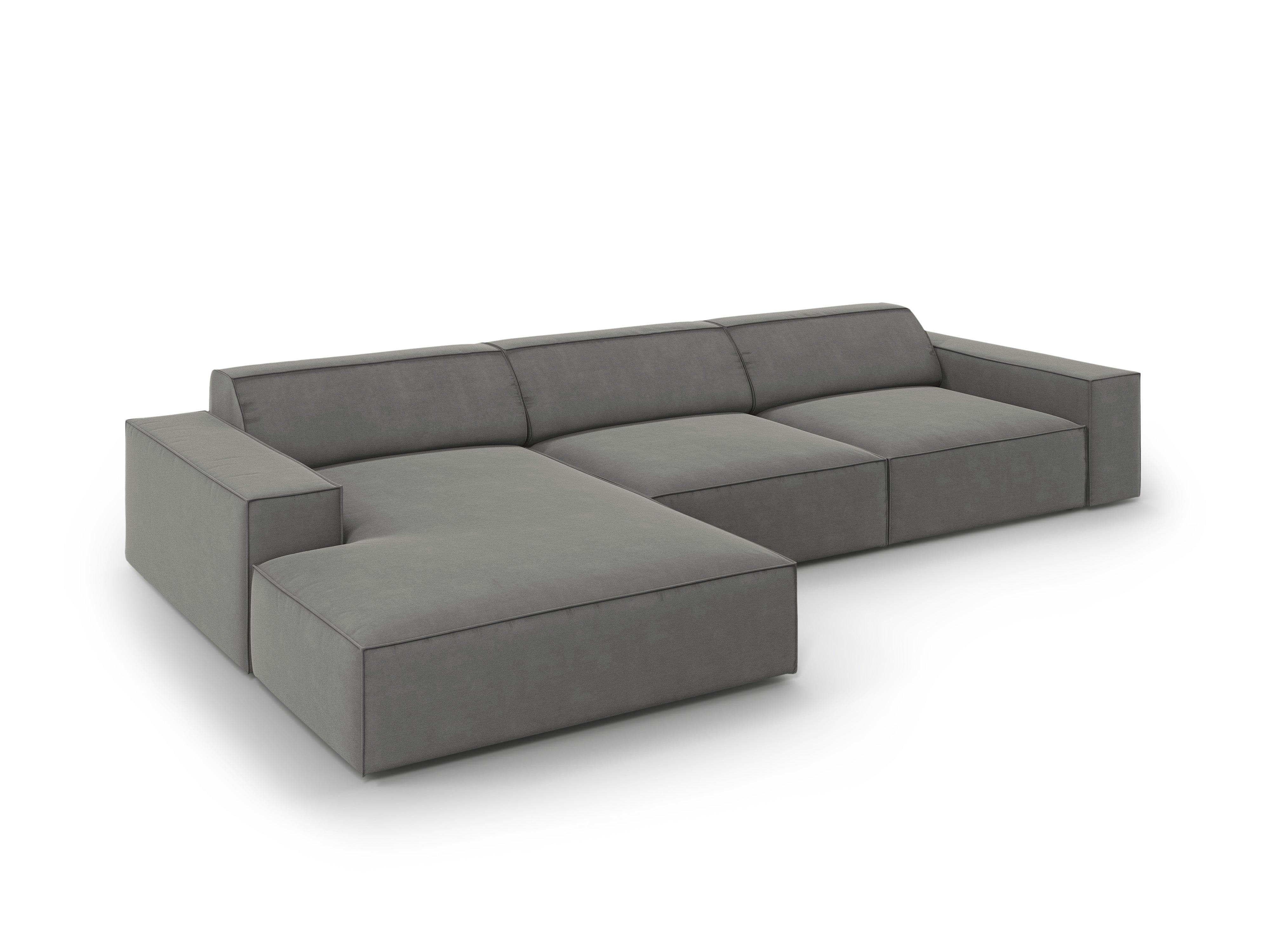 Sedačka z jemného zamatového materiálu ľavostranná pre 4 osoby JODIE svetlosivá