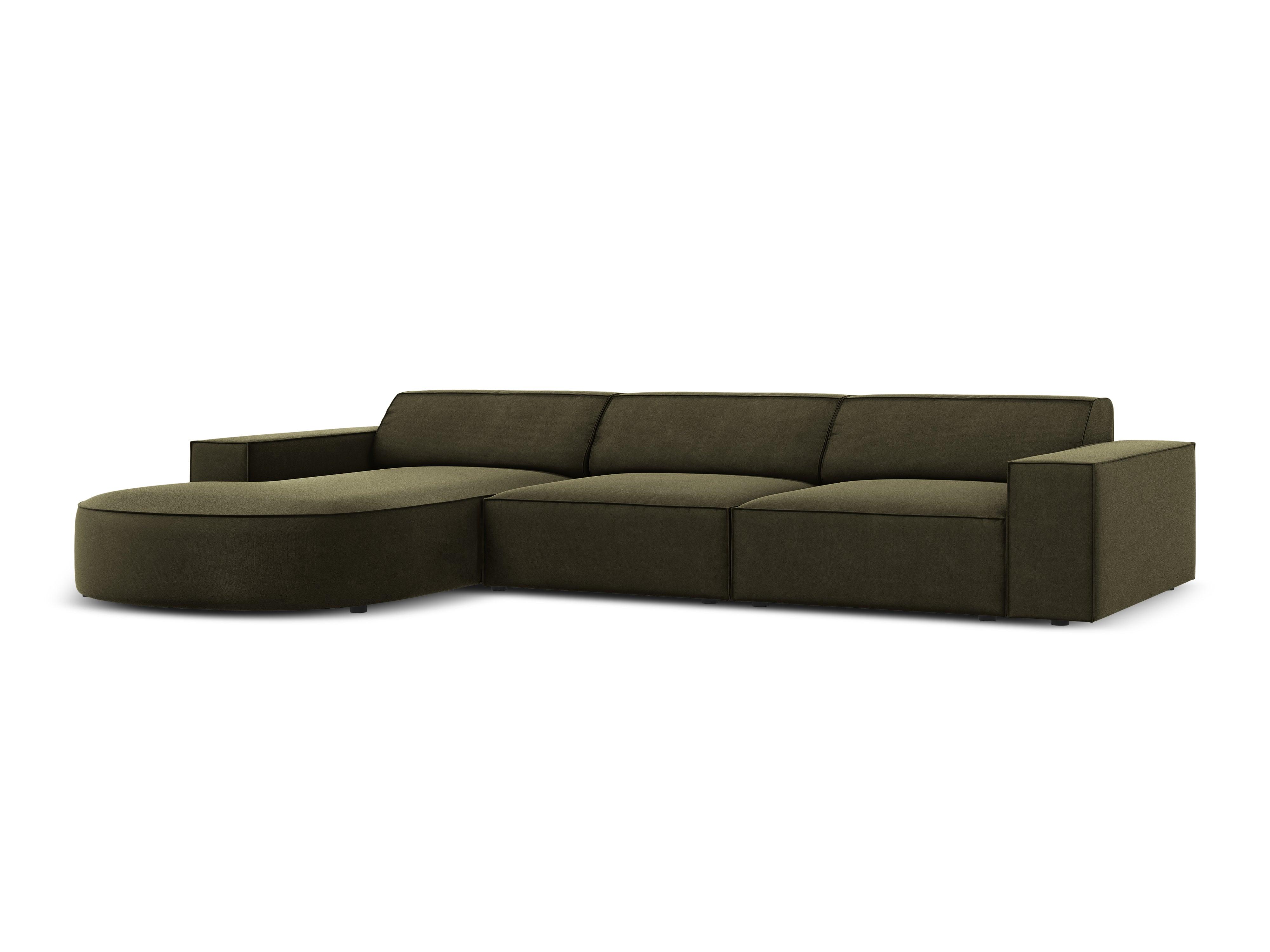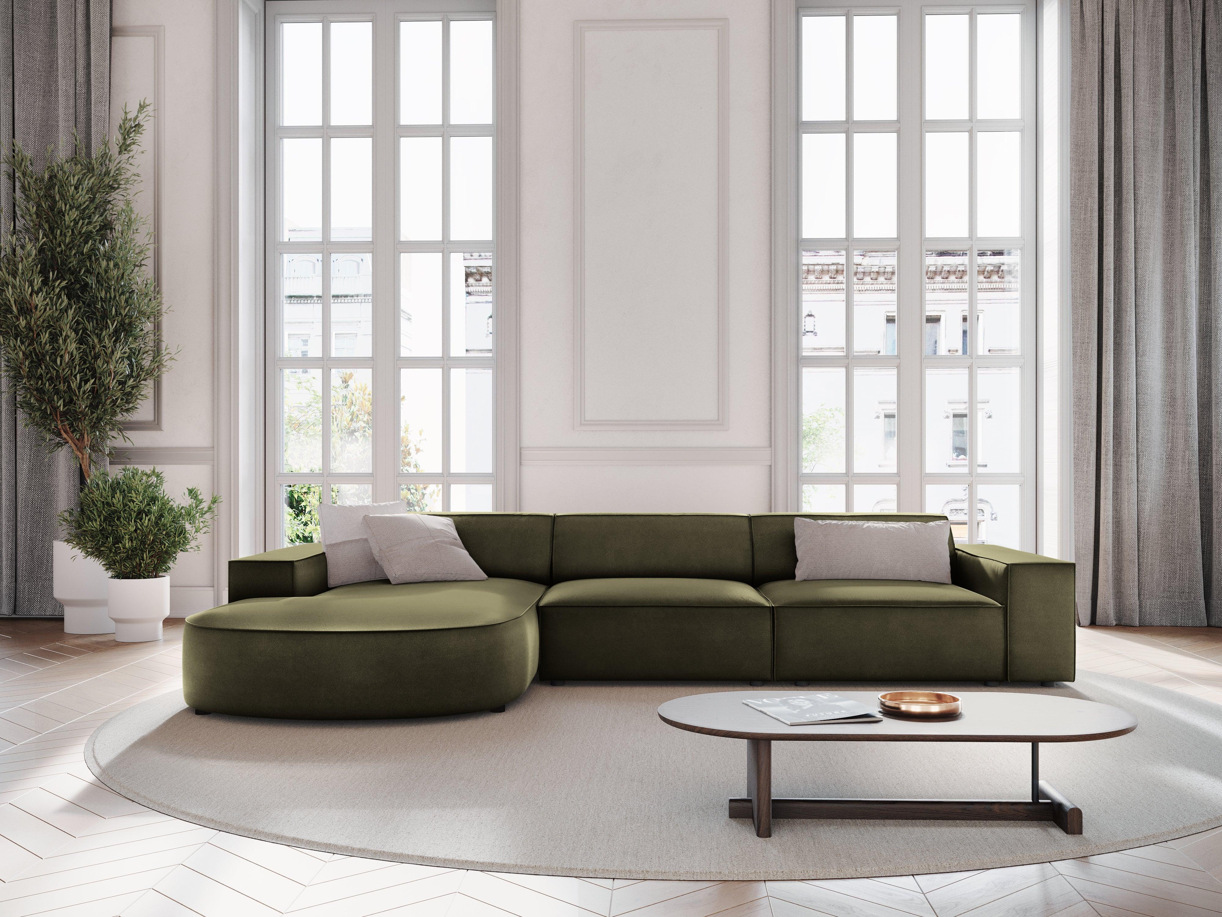Zelený okrúhly 4-miestny sametový rohový gauč JODIE