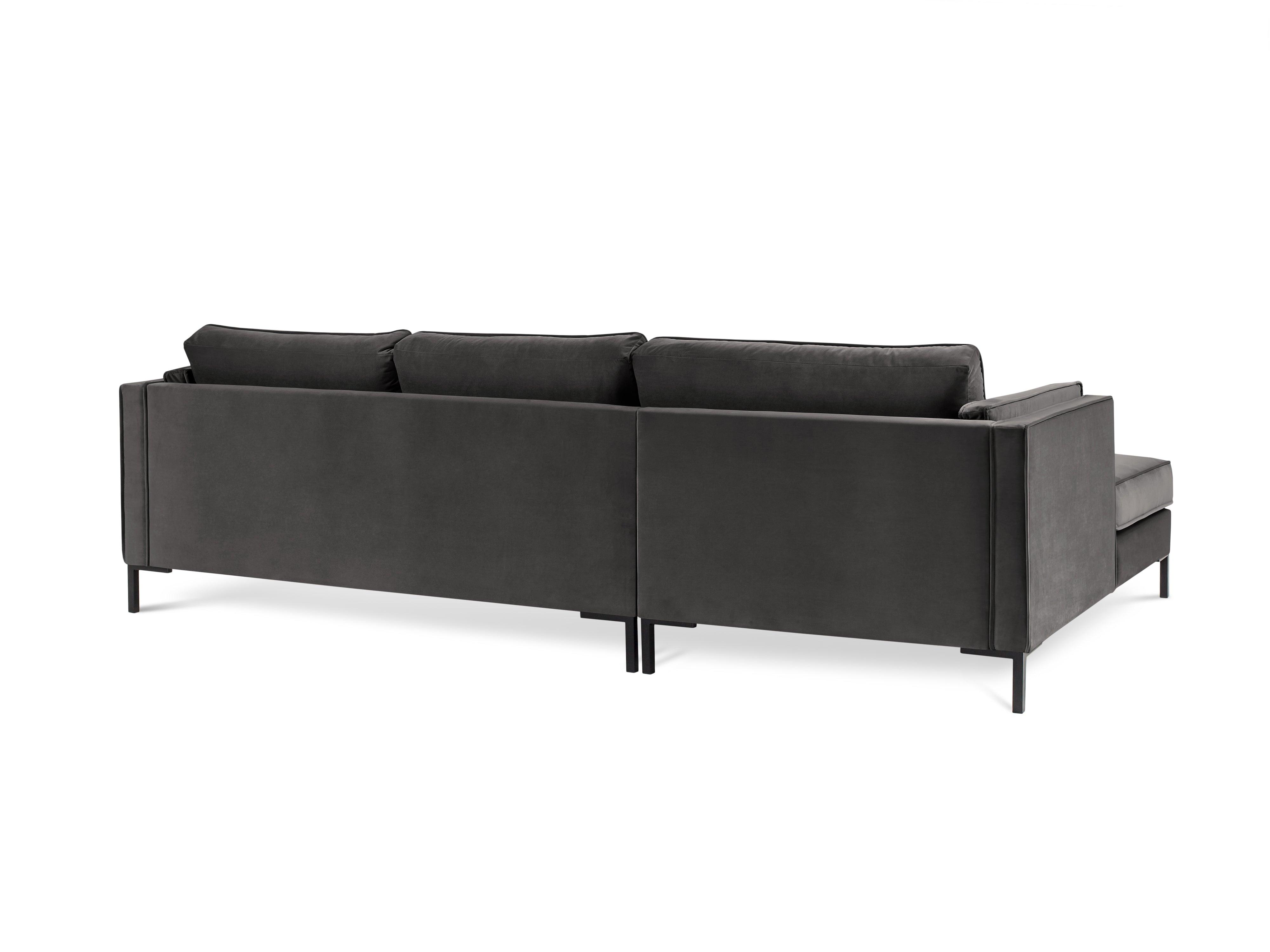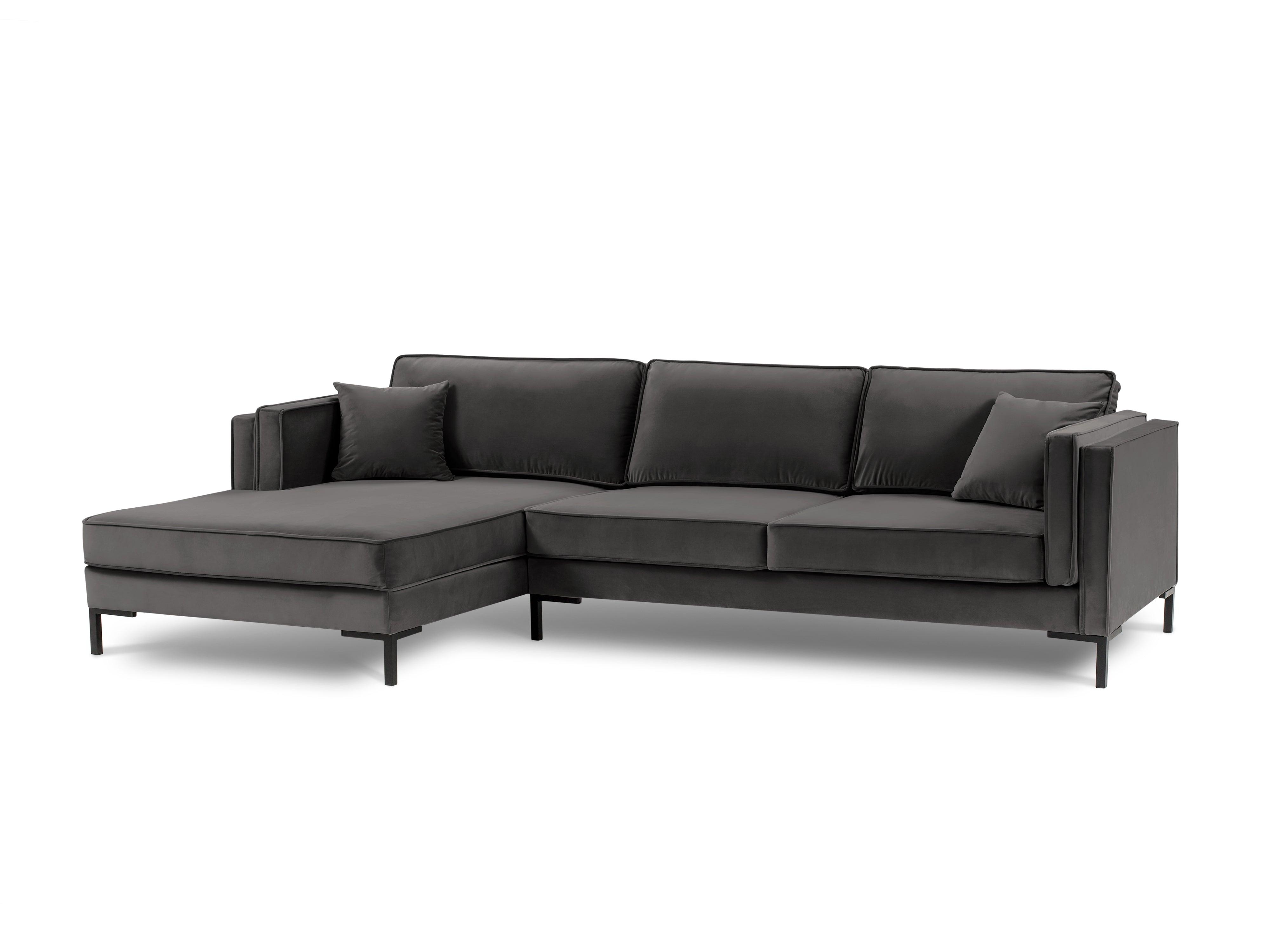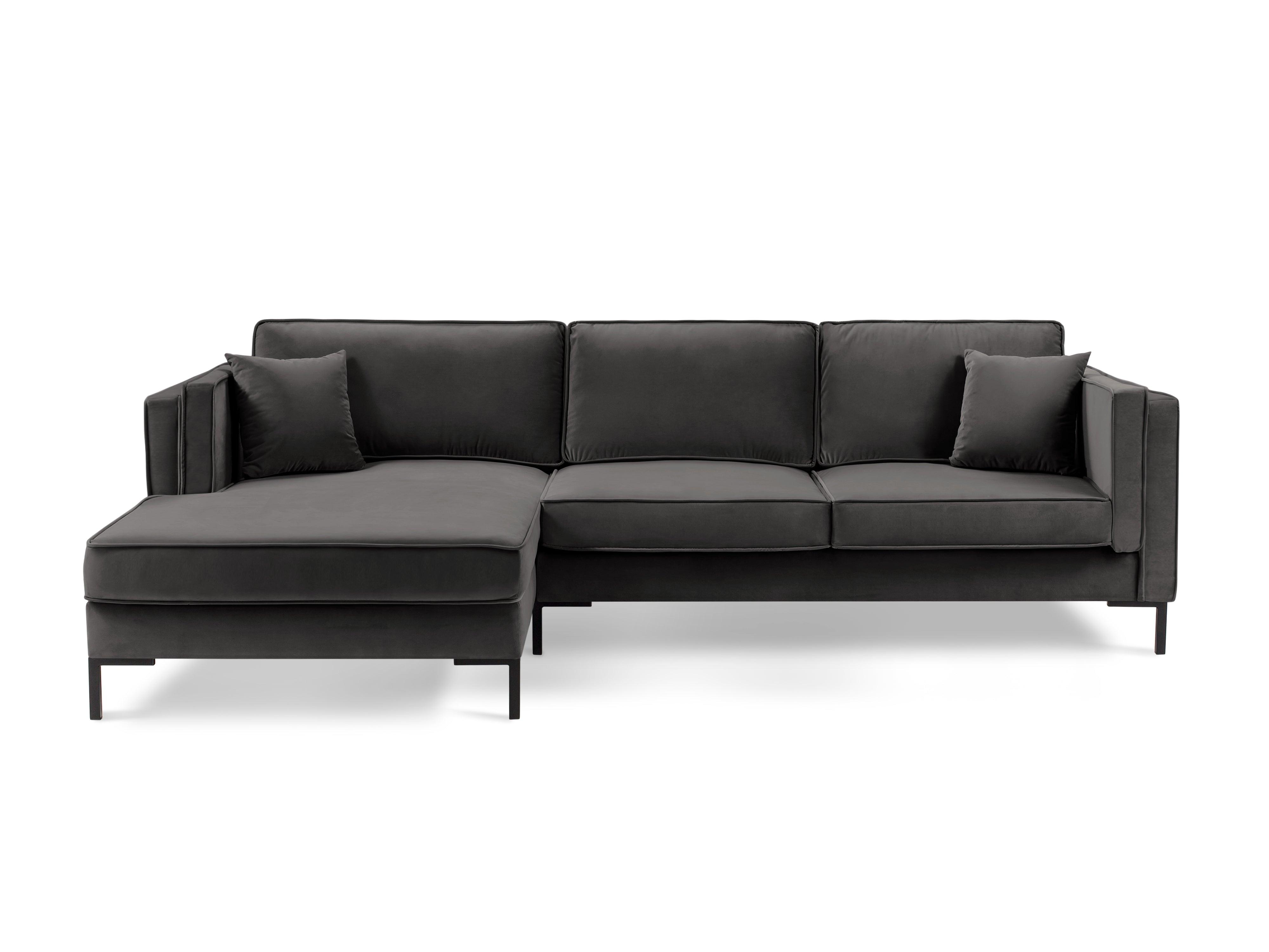Sedačka zamatová ľavostranná LUIS tmavosivá s čiernym podstavcom