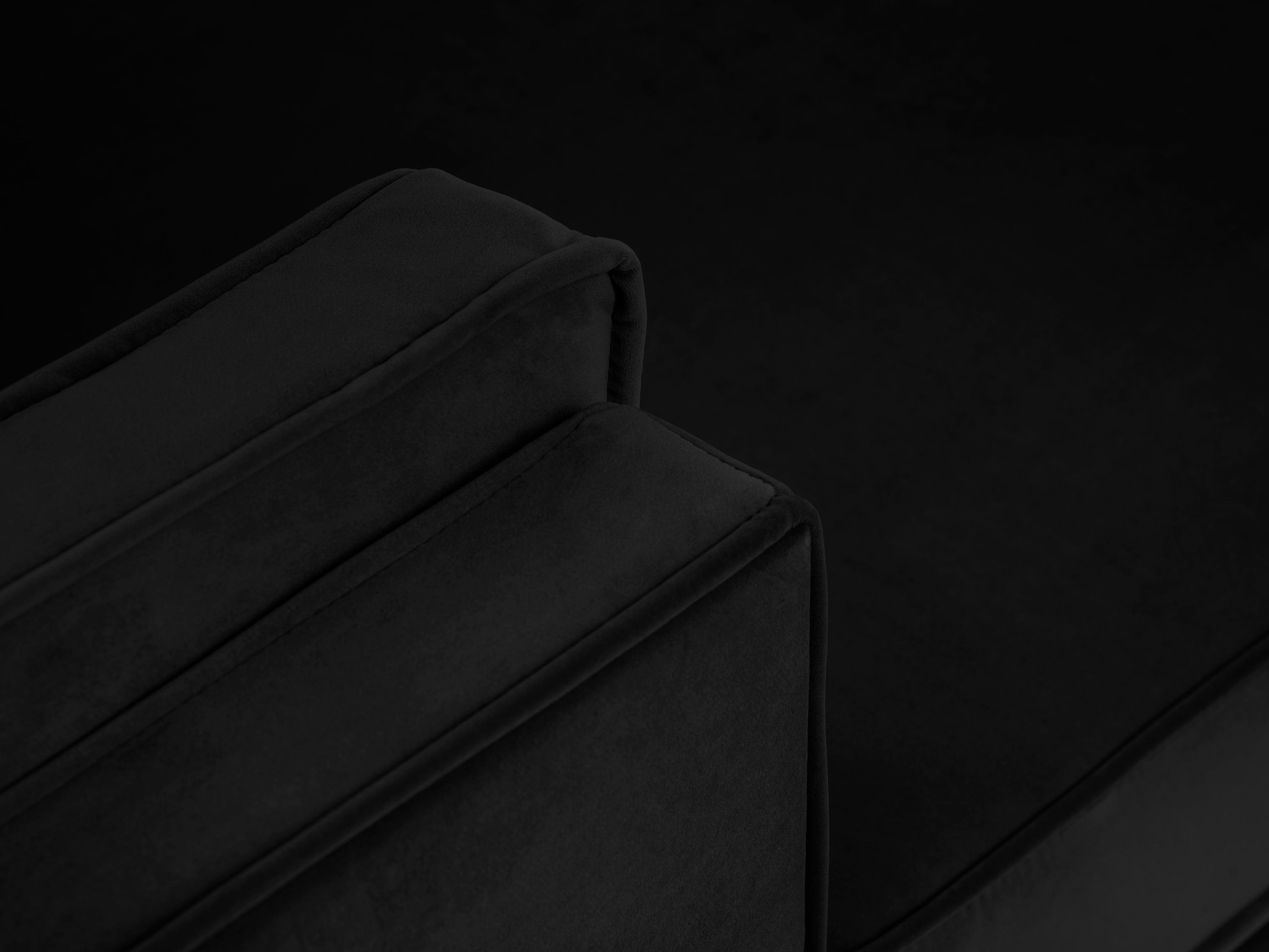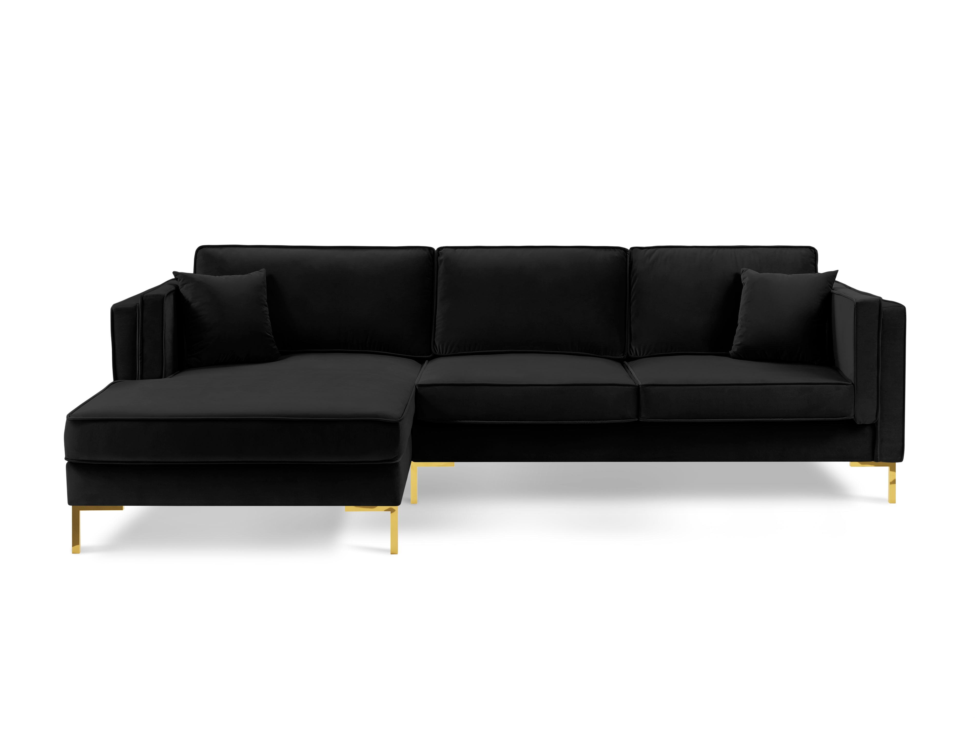 Sametový rohový gauč LUIS čierny so zlatým podstavcom