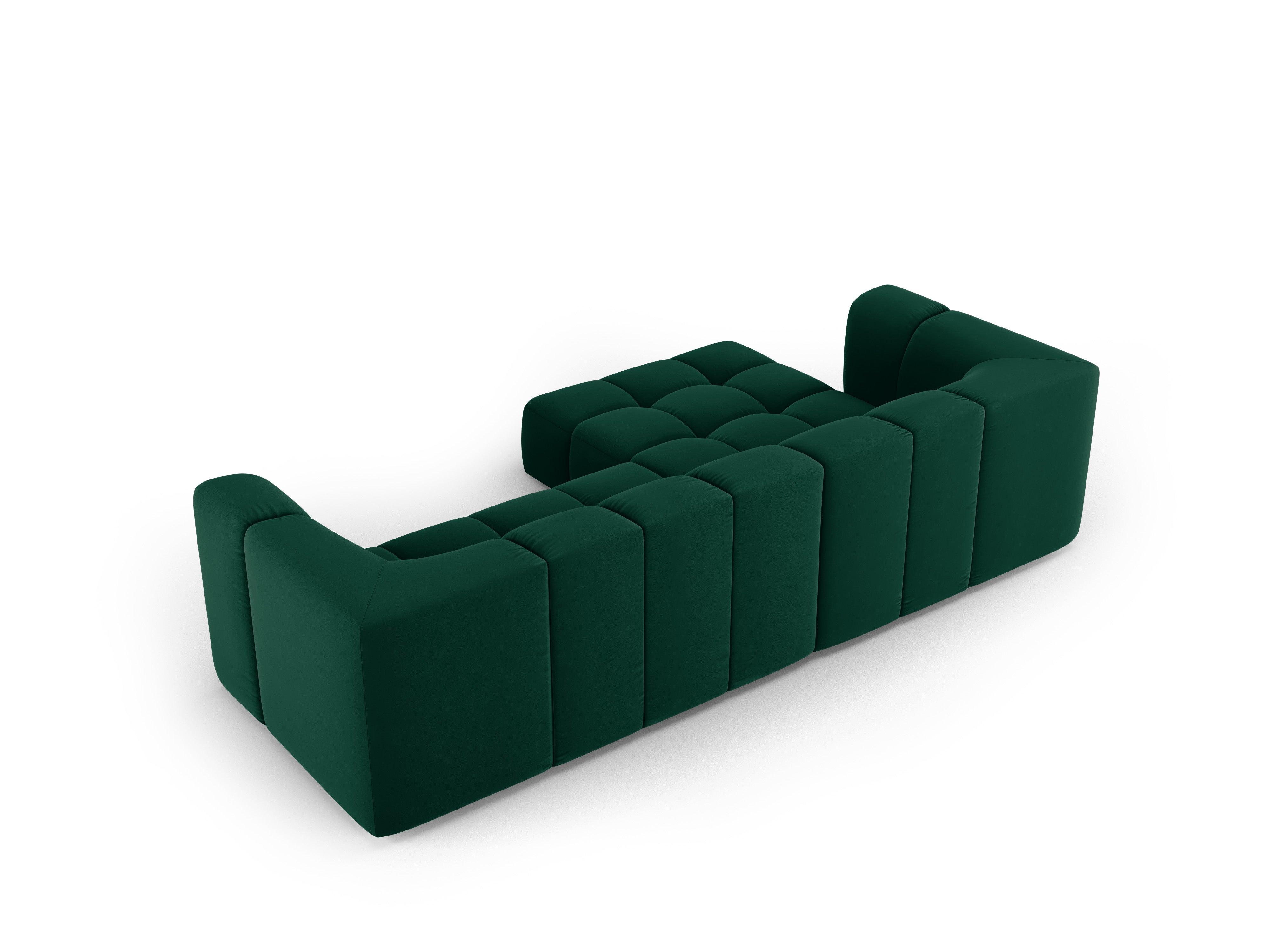 Sametový rohový trojmiestny ľavostranný FRANCESCA v odtieni fľaškovozelenej