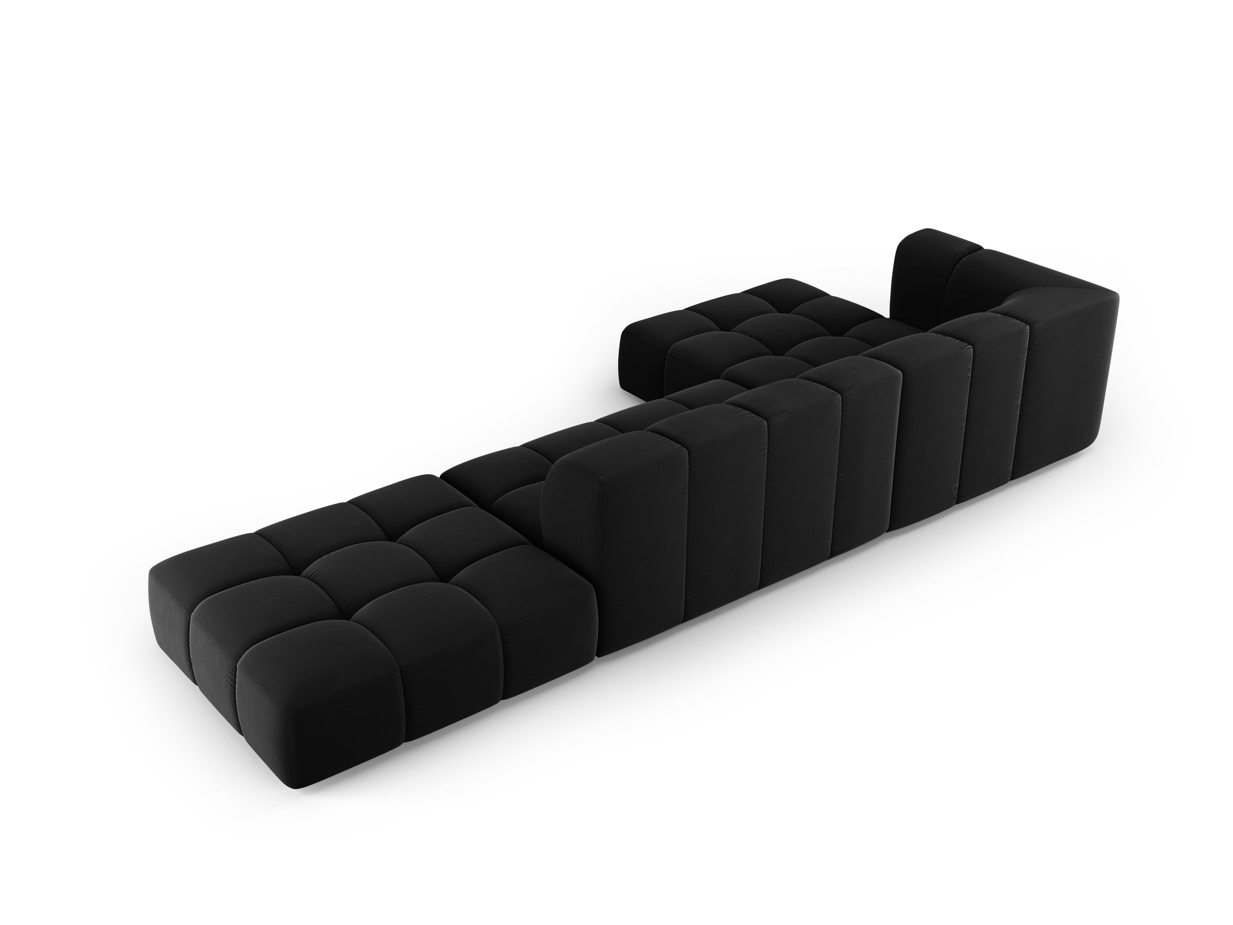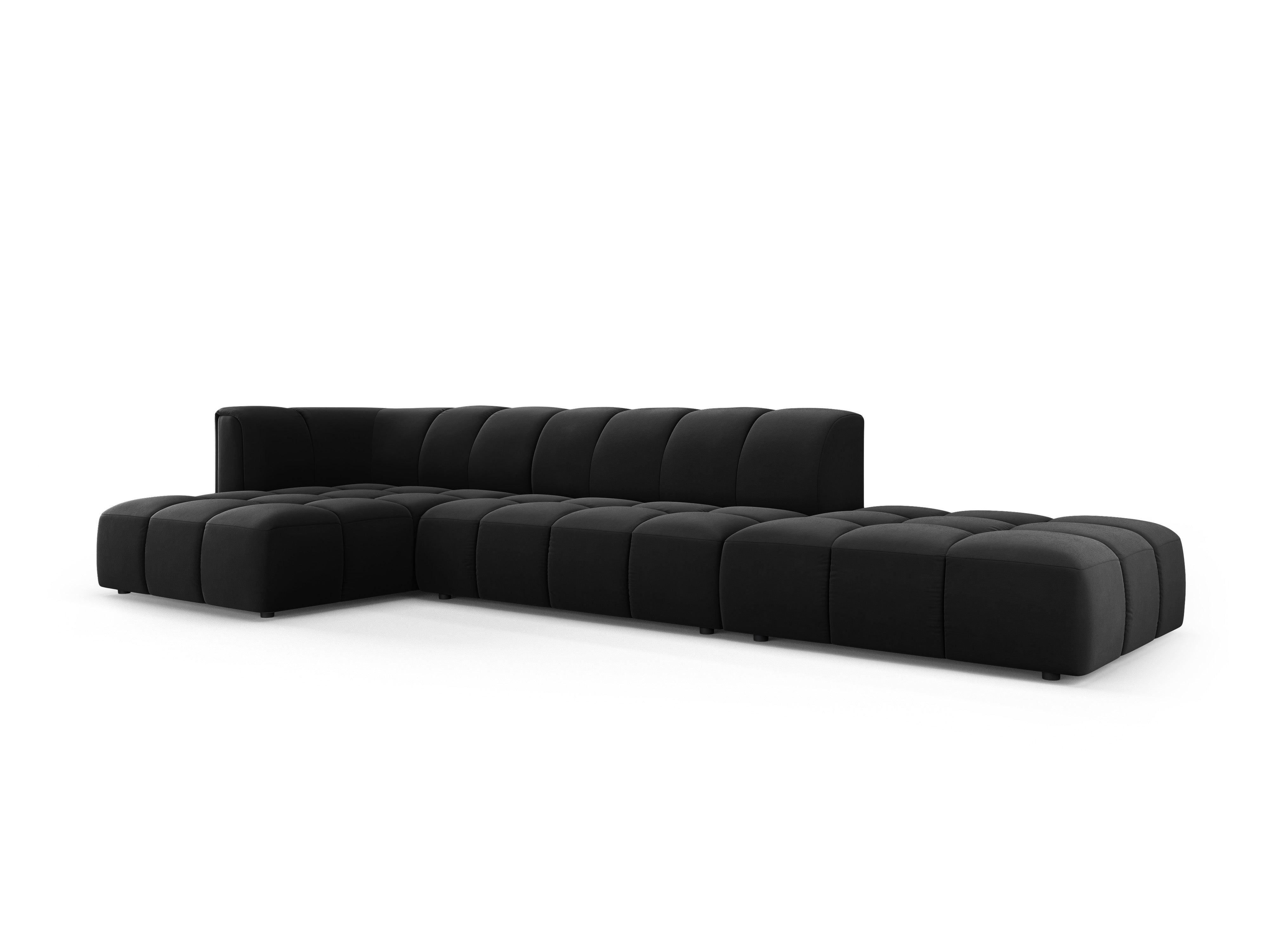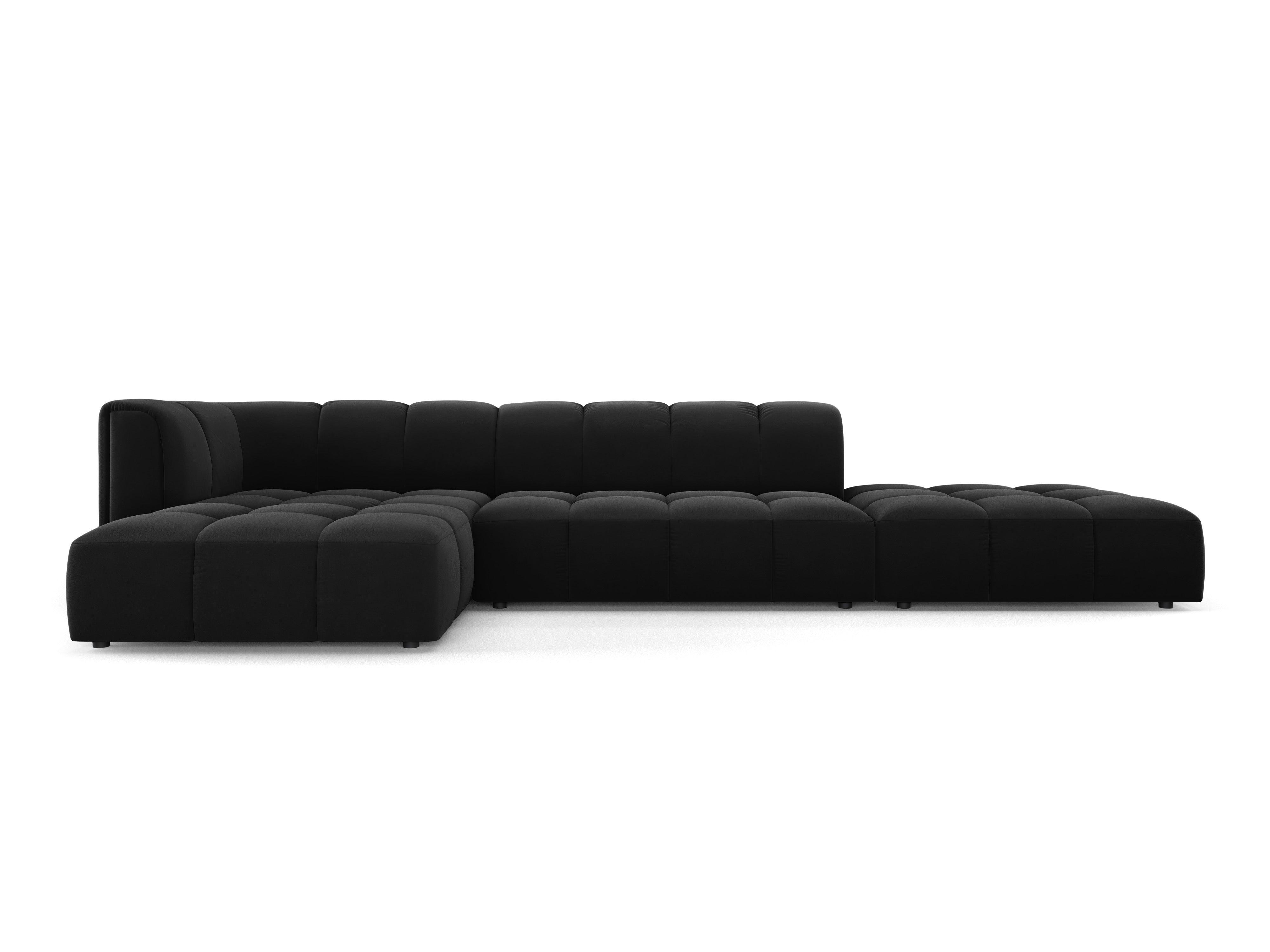 Narożnik aksamitny 5-osobowy lewostronny otwarty FRANCESCA czarny