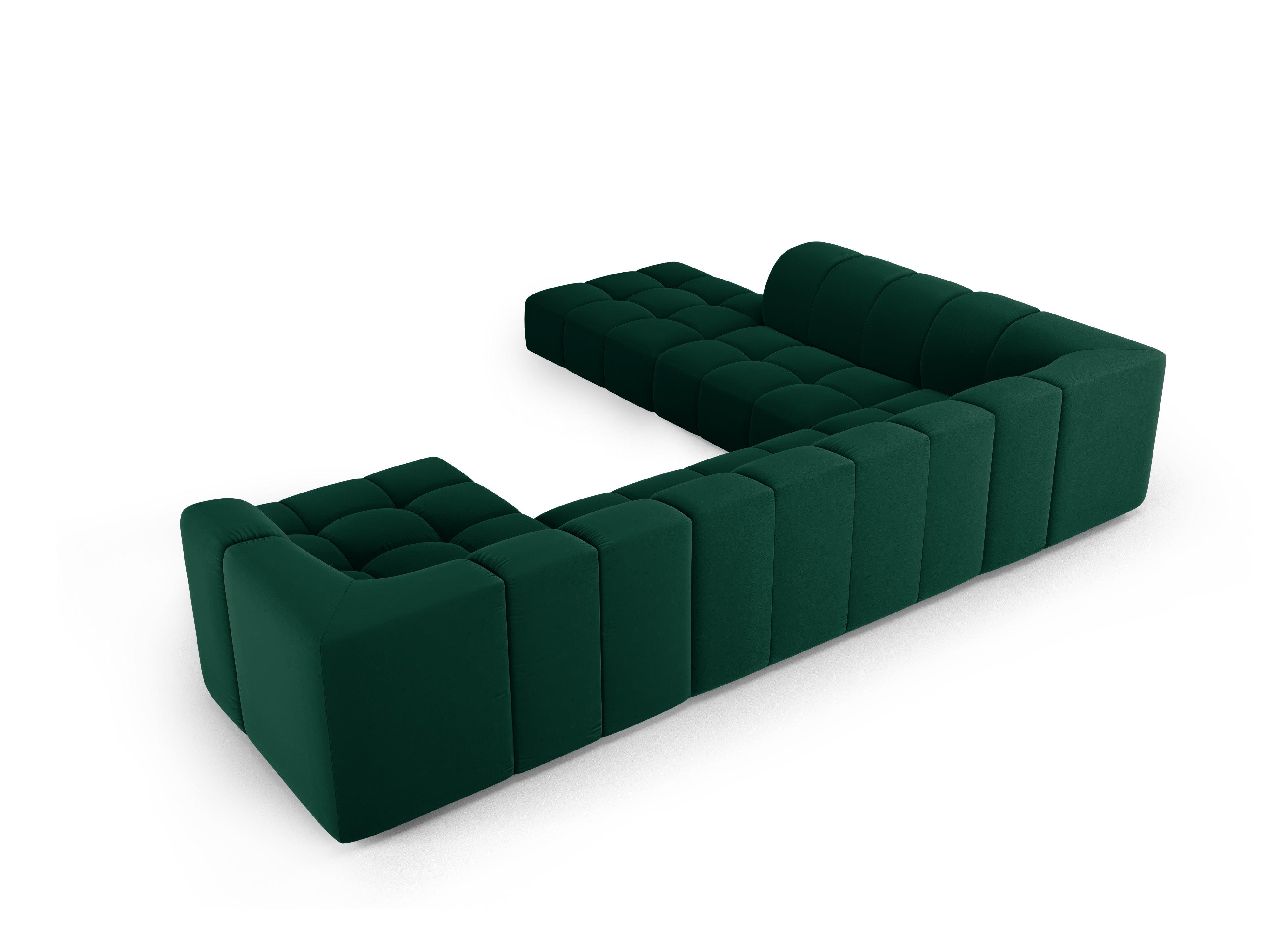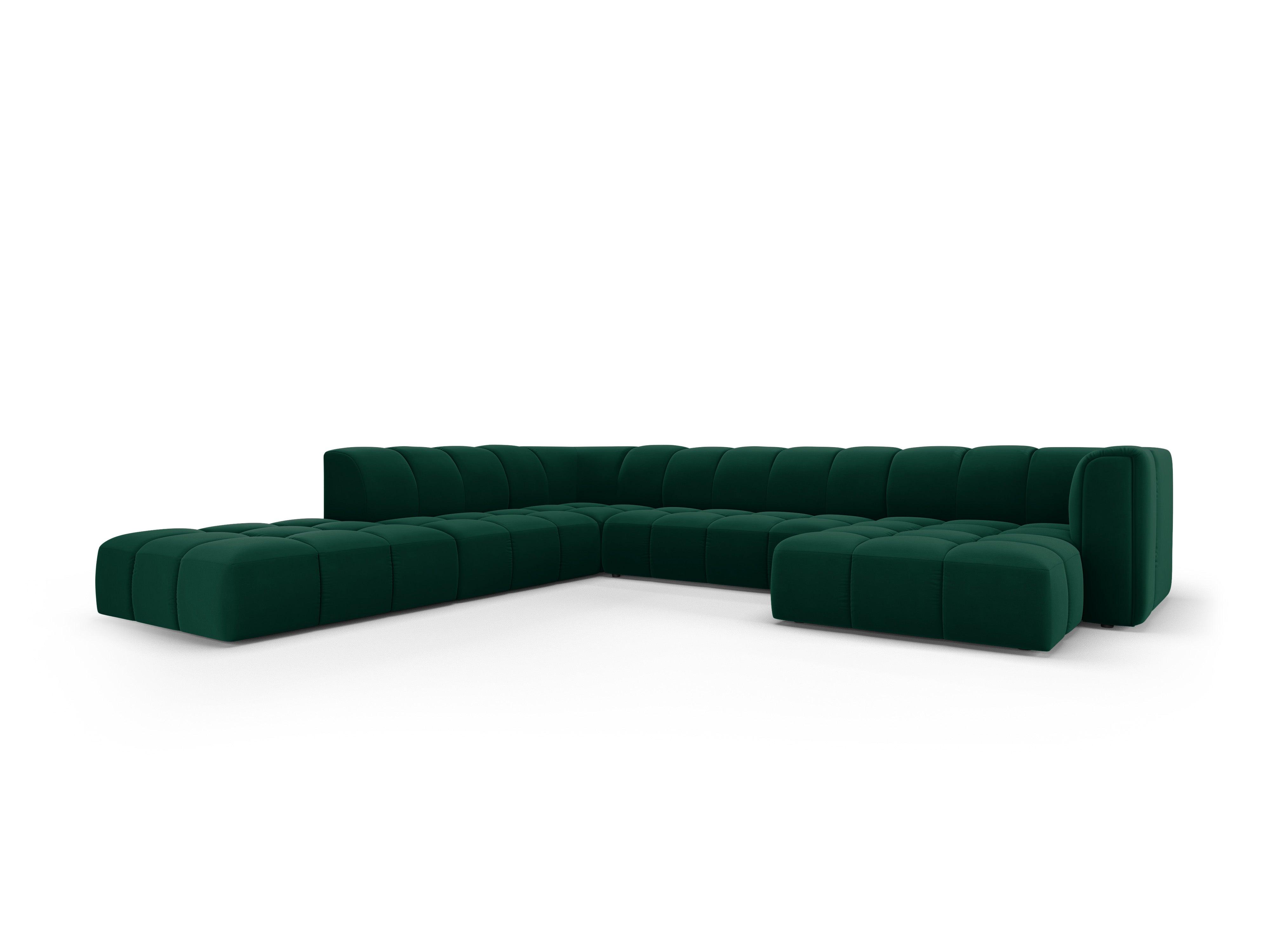 Pohovka s panoramatickým výhľadom z jemného zamatového materiálu, ľavostranná FRANCESCA, fľašková zelená