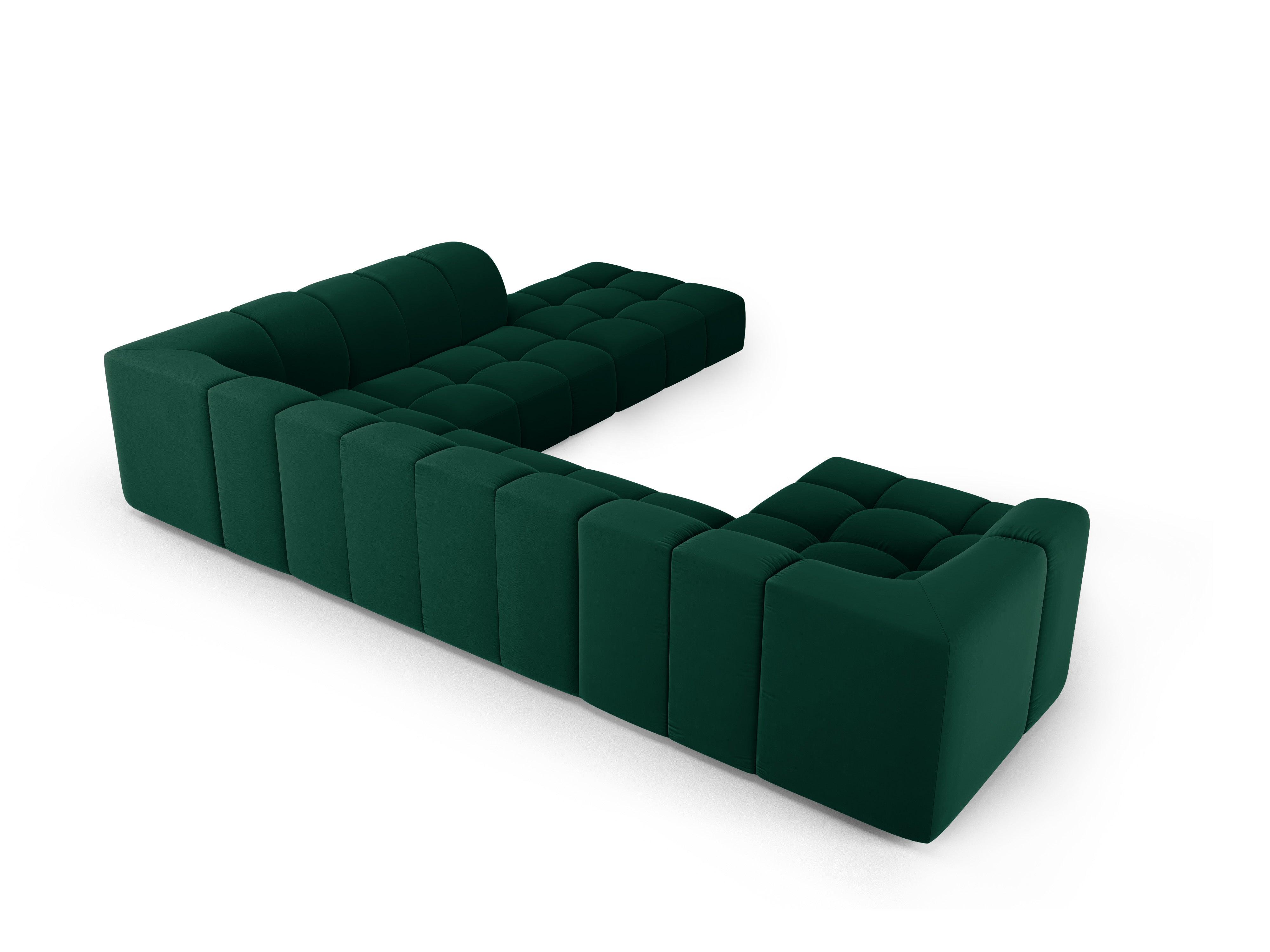 Pohovka panoramatická sametová pravostranná FRANCESCA fľašková zelená