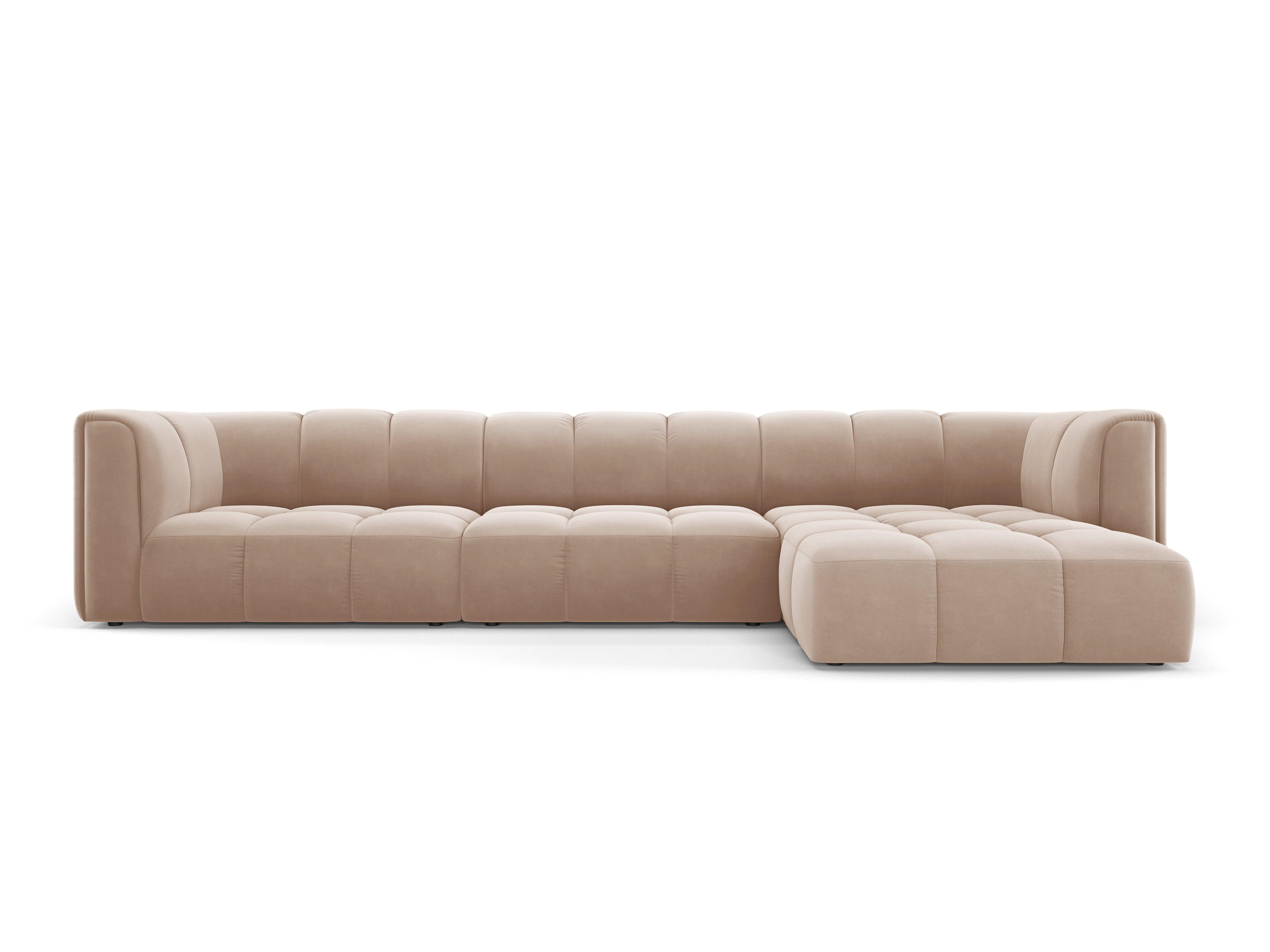 Rohová sedačka z jemného velúru pre 5 osôb pravostranná FRANCESCA béžová