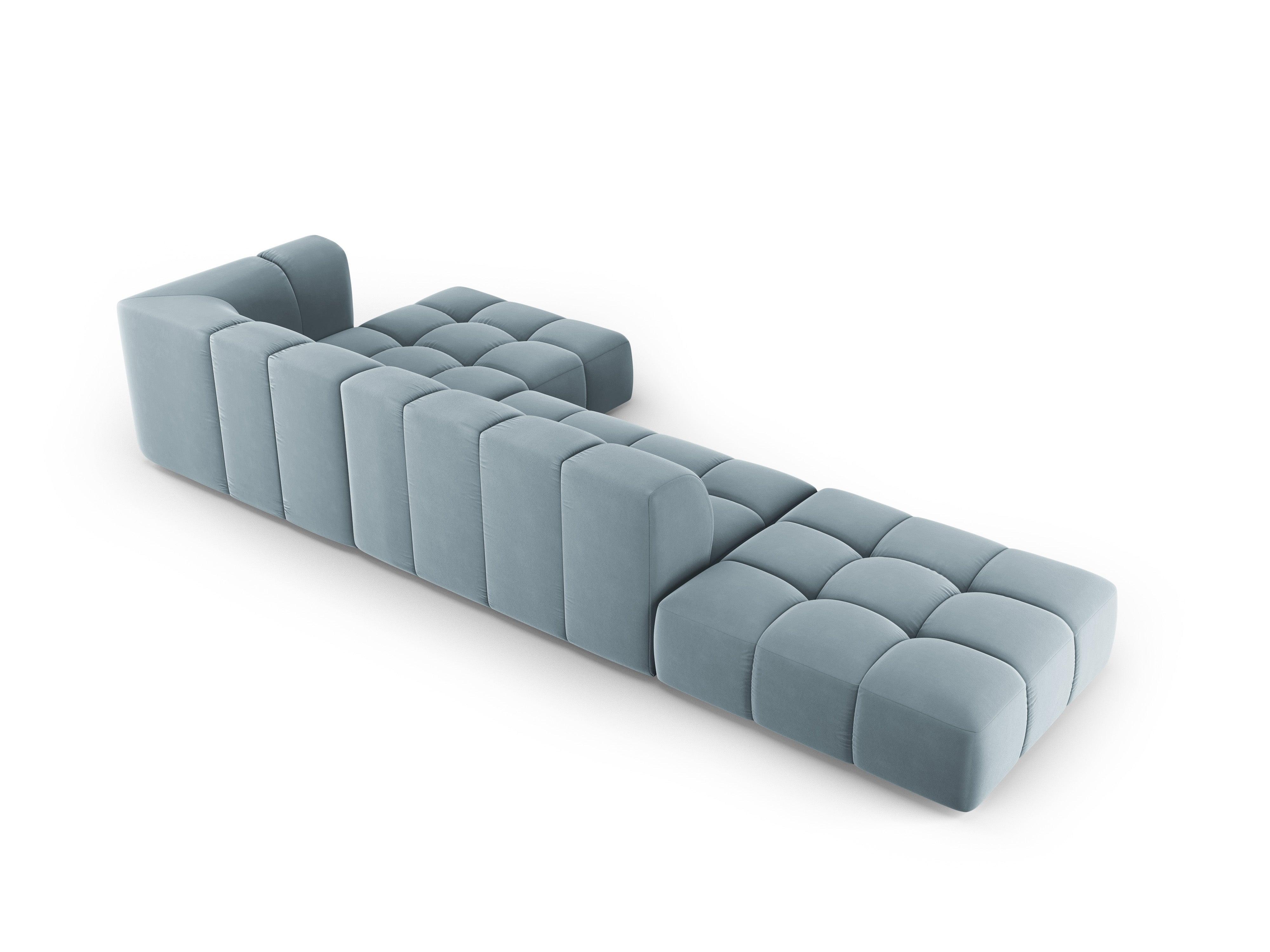 Svetlomodrý pravostranný otvorený sametový rohový gauč pre 5 osôb FRANCESCA