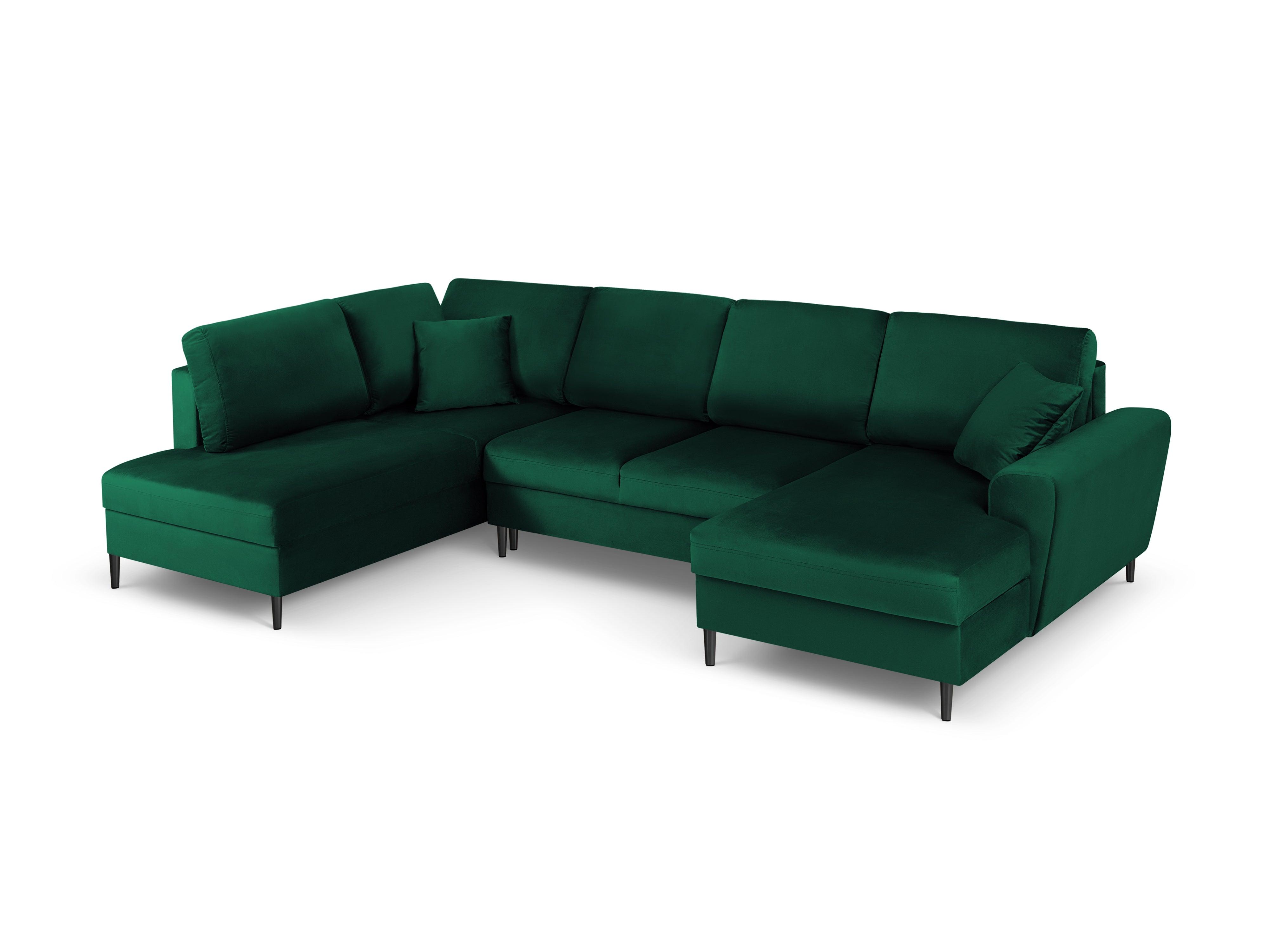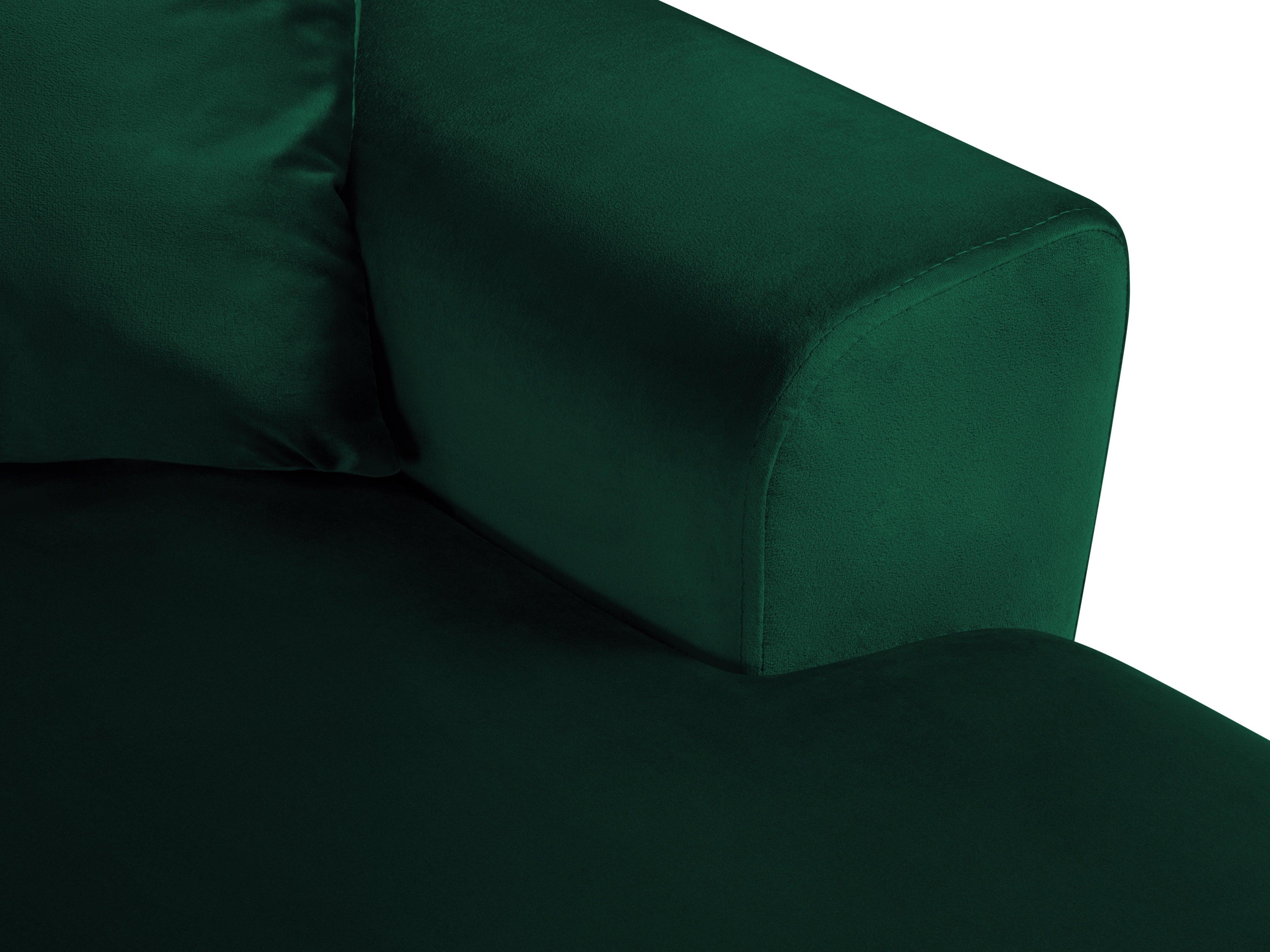 Rohová pohovka s ľavým sedením z sametu panoramatická s funkciou spania KYOTO v fľaškovozelenej farbe s čiernym podstavcom