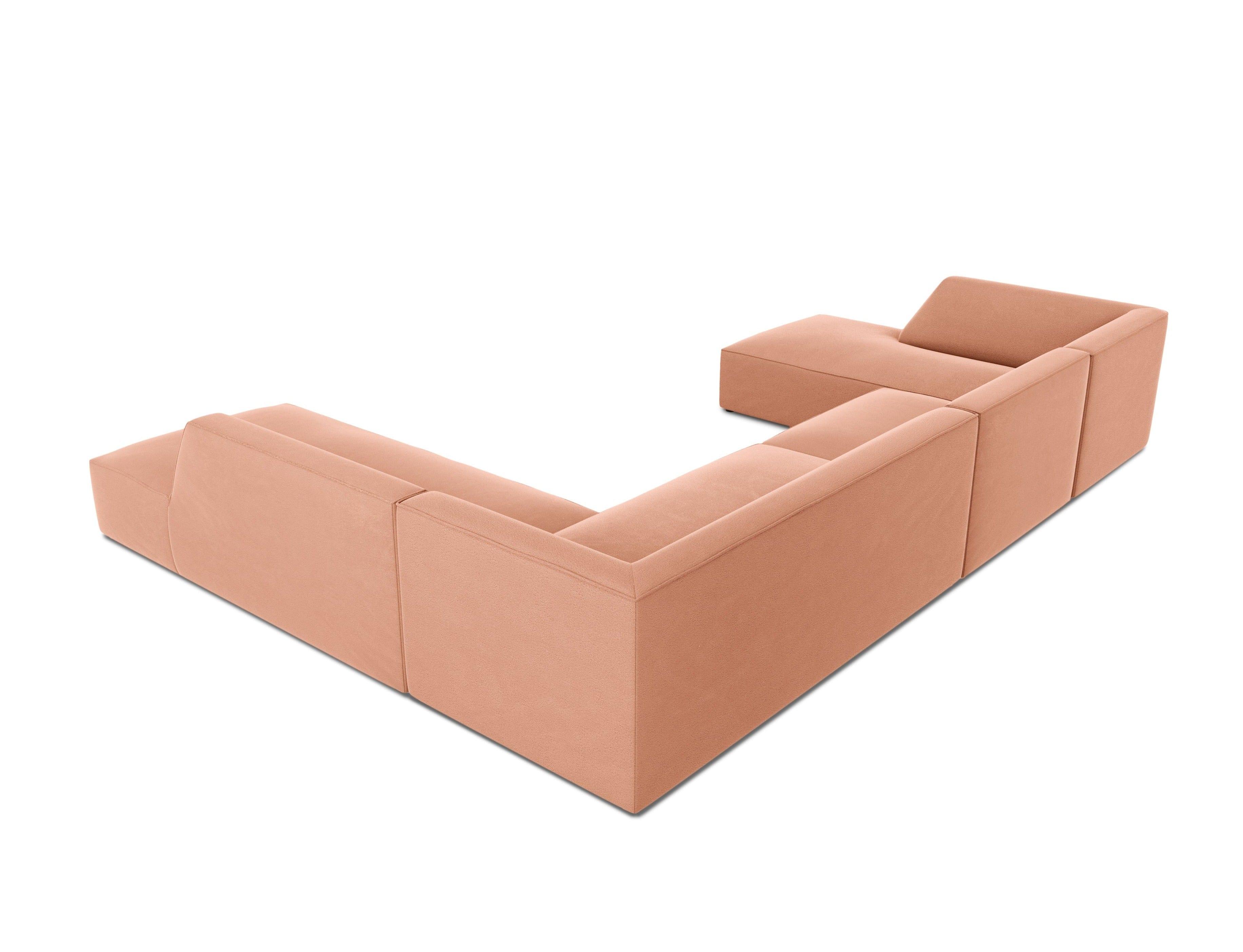 Rohová sedačka v tvare U sametová pravostranná RUBY lososová