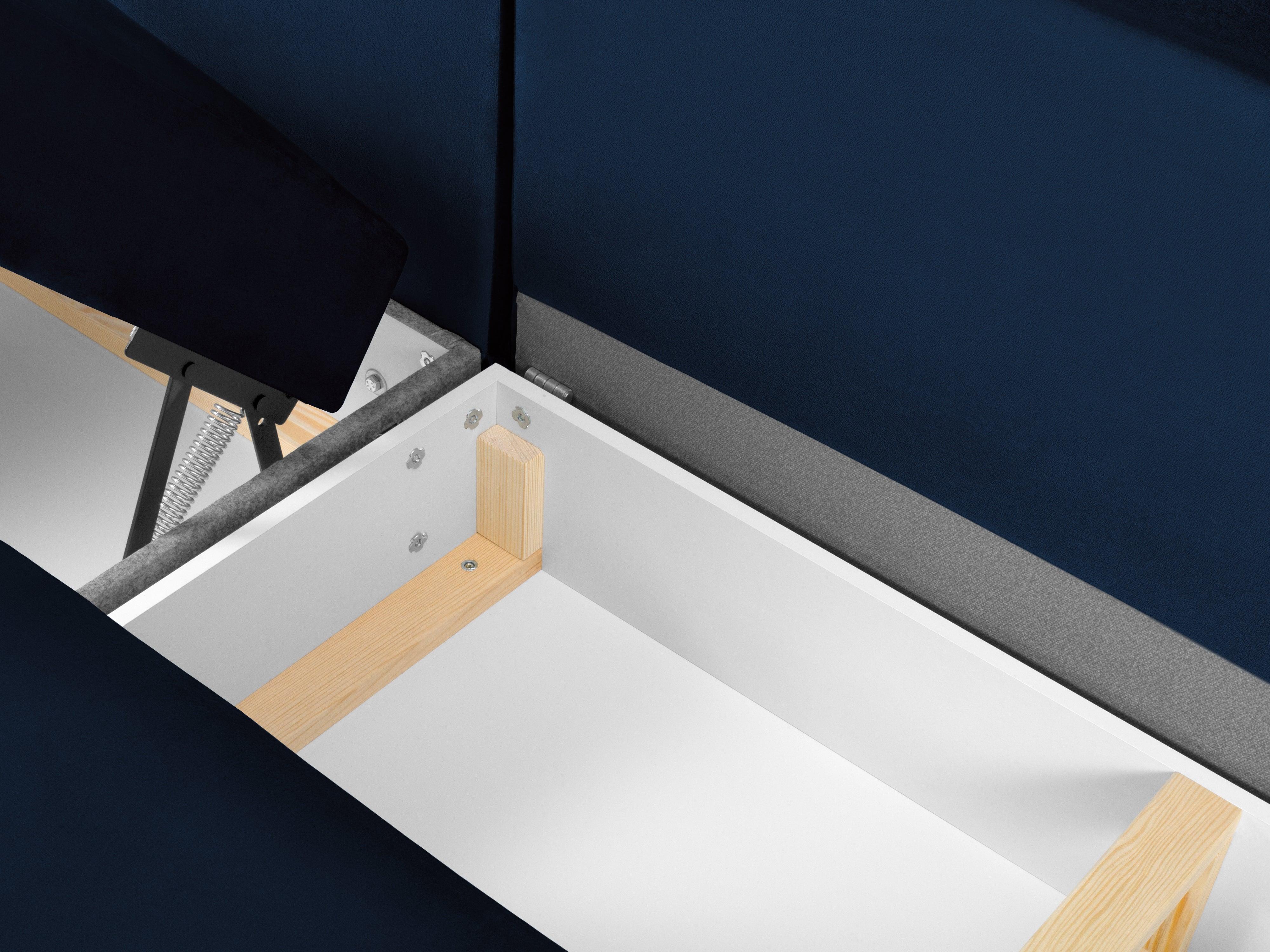 Pravostranný rohový sametový panoramatický s funkciou spania KYOTO modrý s čiernym podstavcom