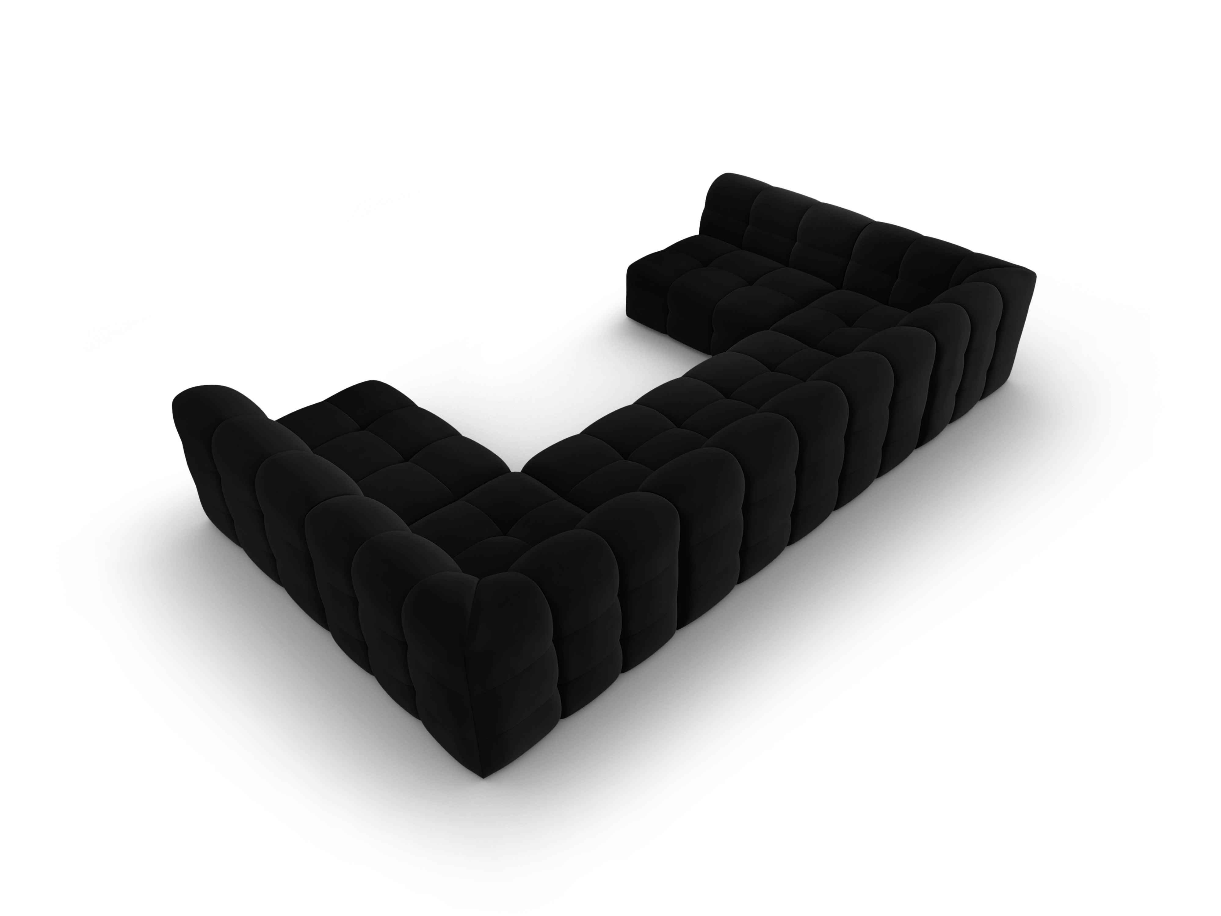 Sametový rohový gauč v tvare U Kendal očarí svojimi jedinečnými prešívaniami a prekladaním, ktoré dodajú interiéru výnimočnú eleganciu v štýle moderný klasický. Bublinkové sedadlo v kombinácii so štýlovým operadlom vytvára pohodlné miesto na relaxáciu po náročnom dni.Kendal prekvapuje trochu avantgardnou formou a priťahuje pozornosť, bez ohľadu na to, z ktorej strany sa na ňu pozrieme.