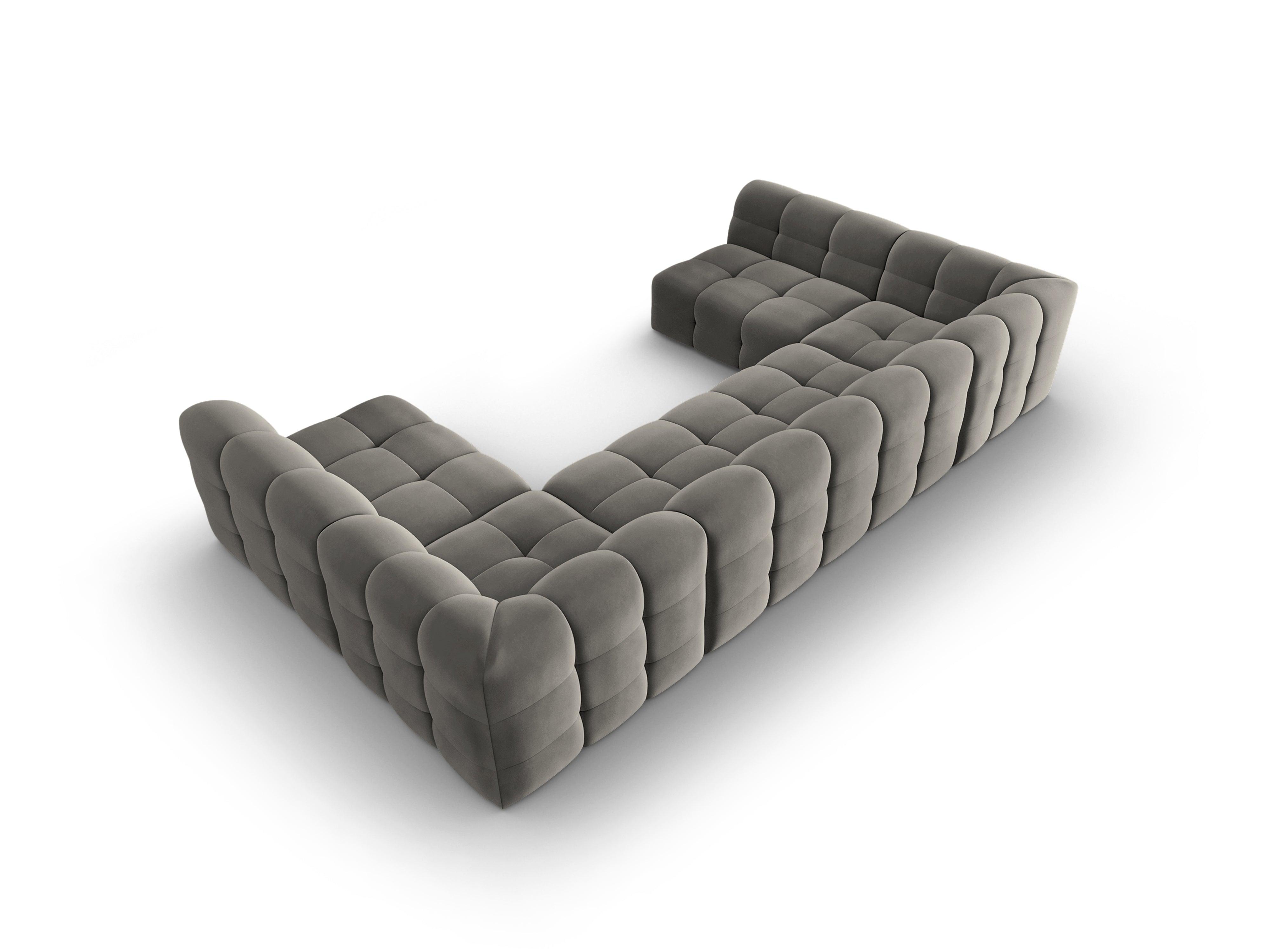Sivý sametový rohový gauč v tvare U KENDAL
