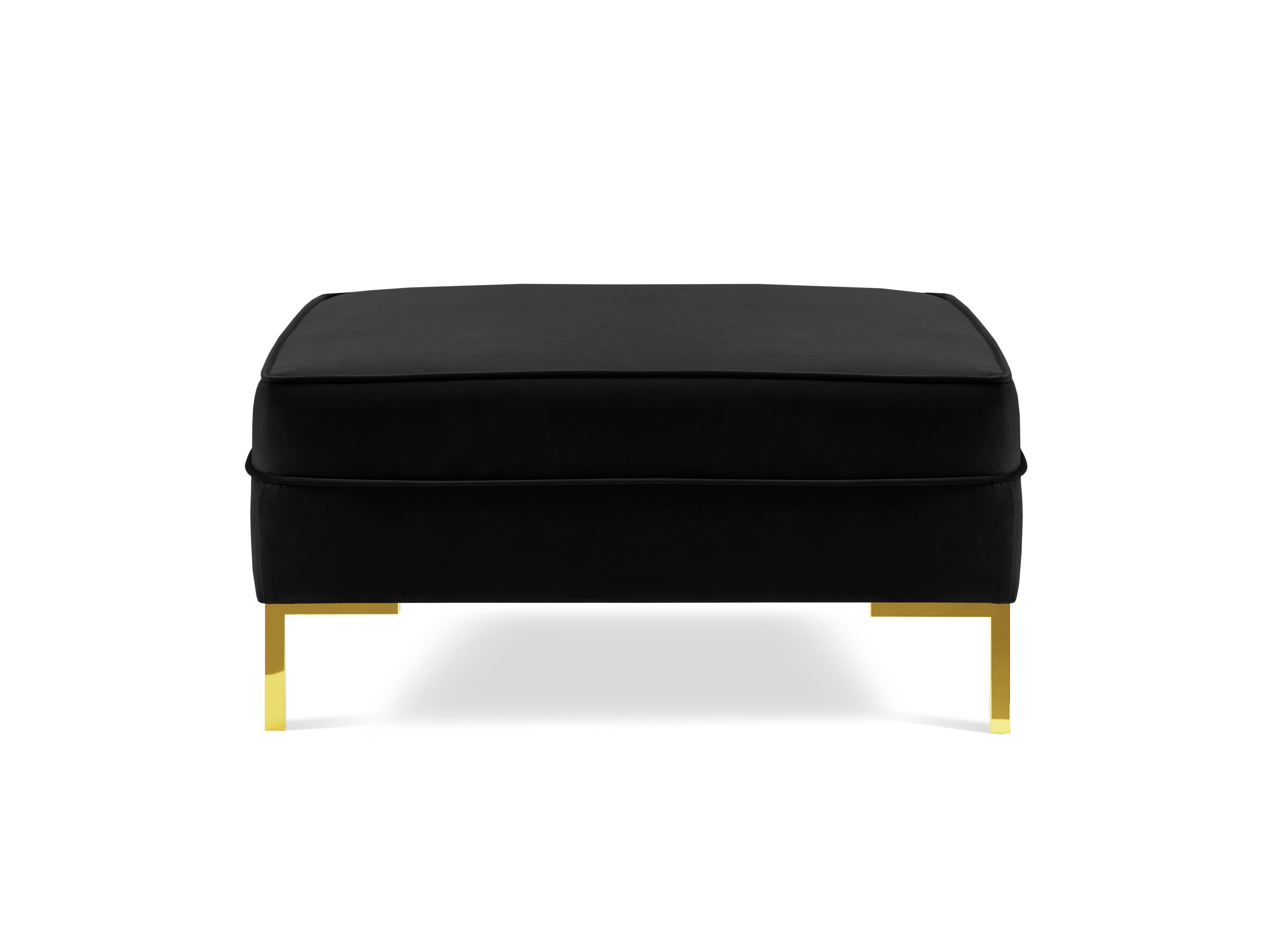 Puf zamatový LUIS čierny so zlatým podstavcom