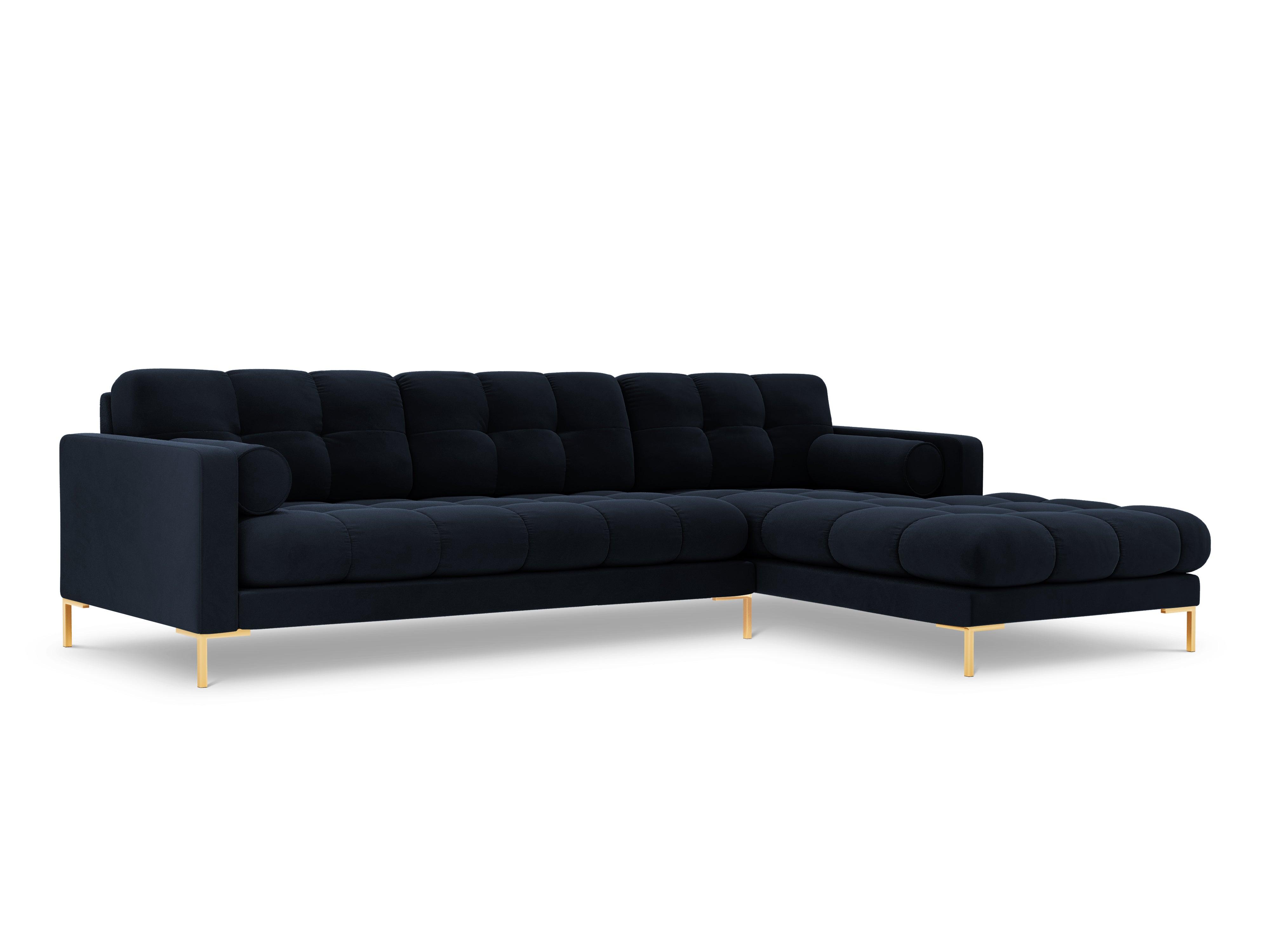 Narożnik aksamitny prawostronny BALI ciemnoniebieski ze złotą podstawą