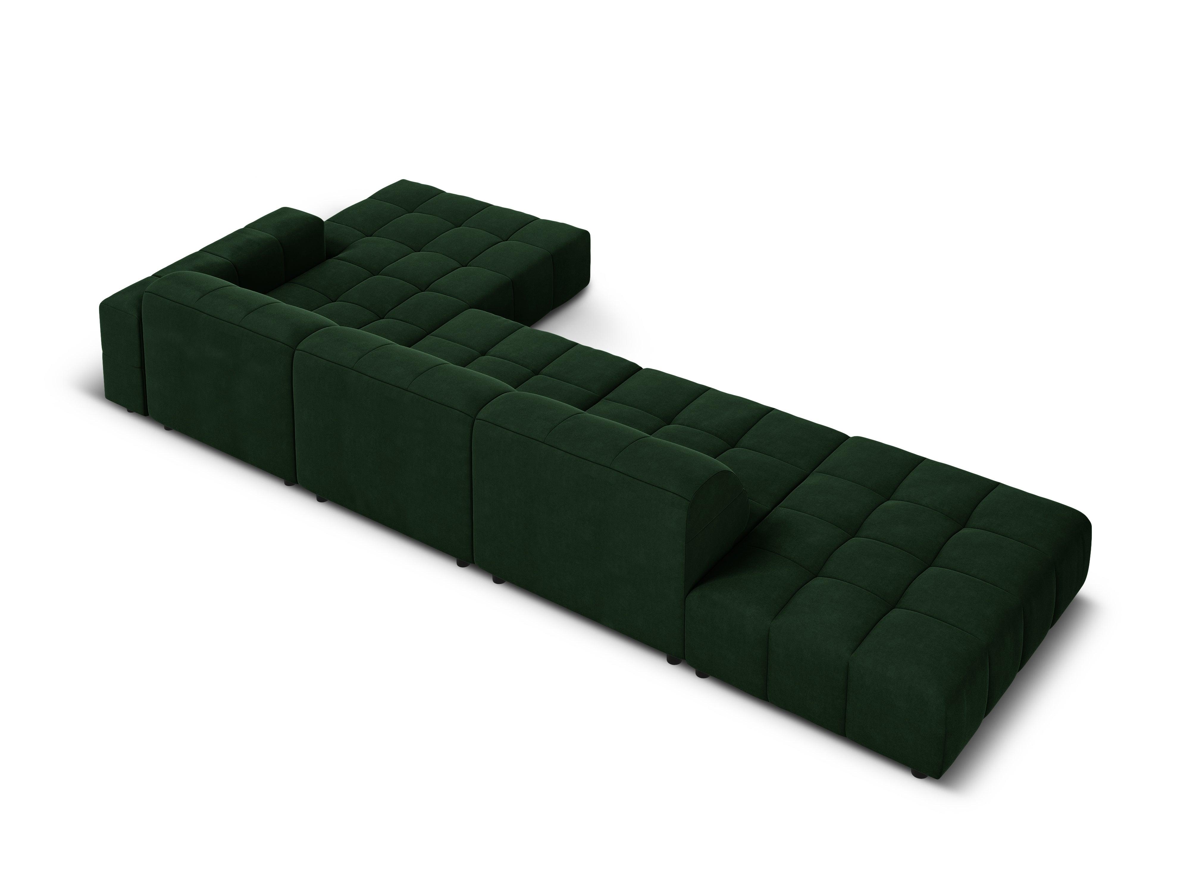 Pravostranný rohový gauč z aksamitného materiálu pre 5 osôb CHICAGO v odtieni fľaškovozelenej