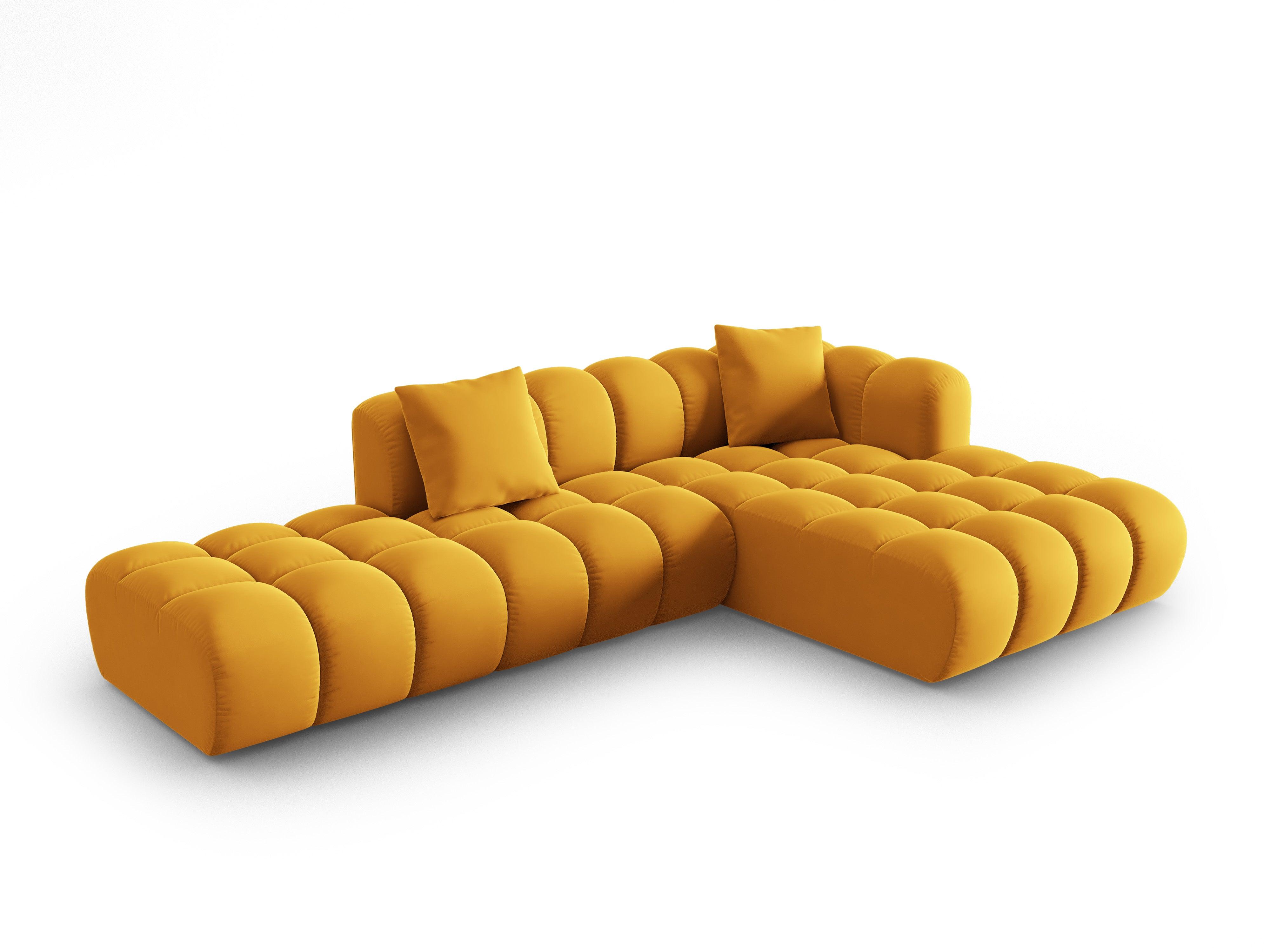 Súprava zamatová 5-osobová pravostranná HALLEY žltá