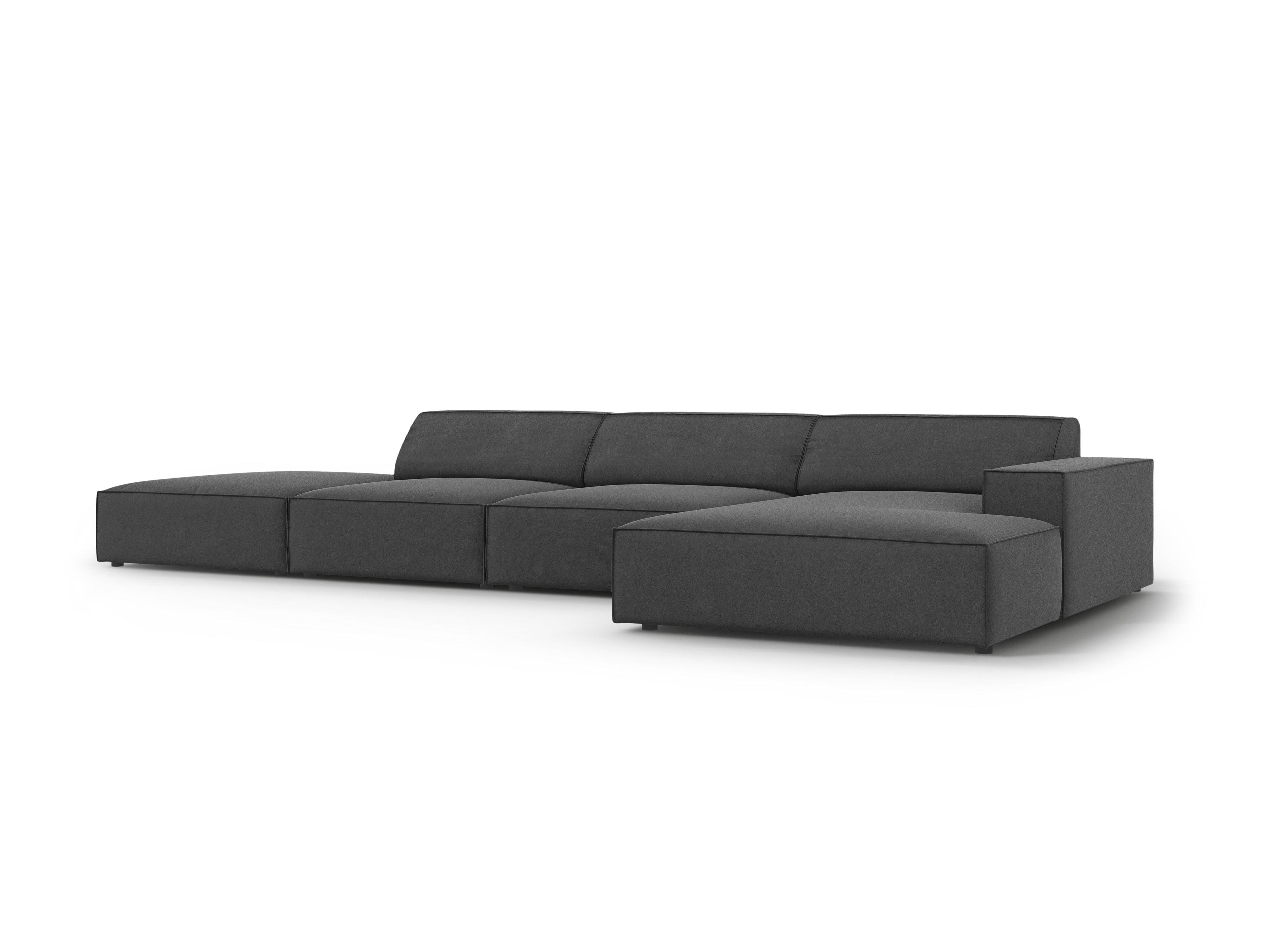 Sivý pravý sametový rohový gauč pre 5 osôb JODIE