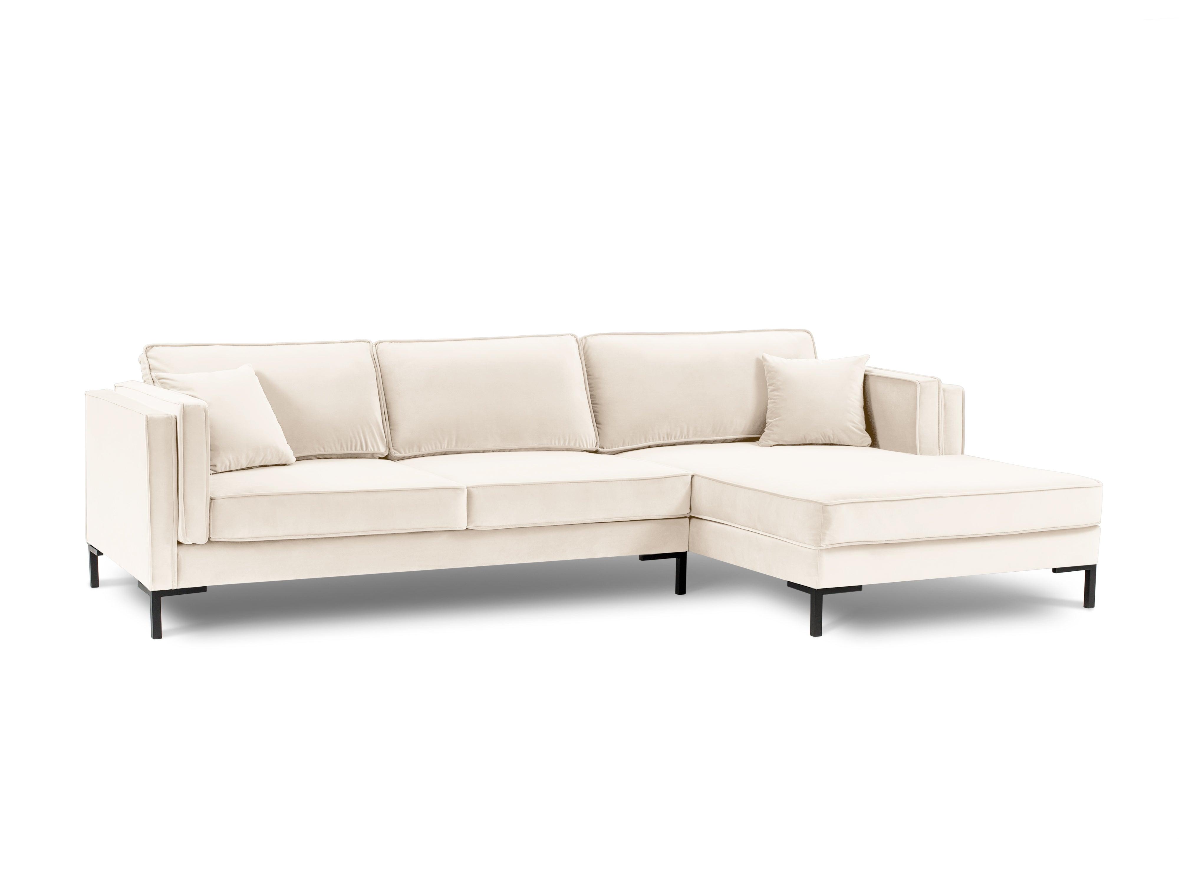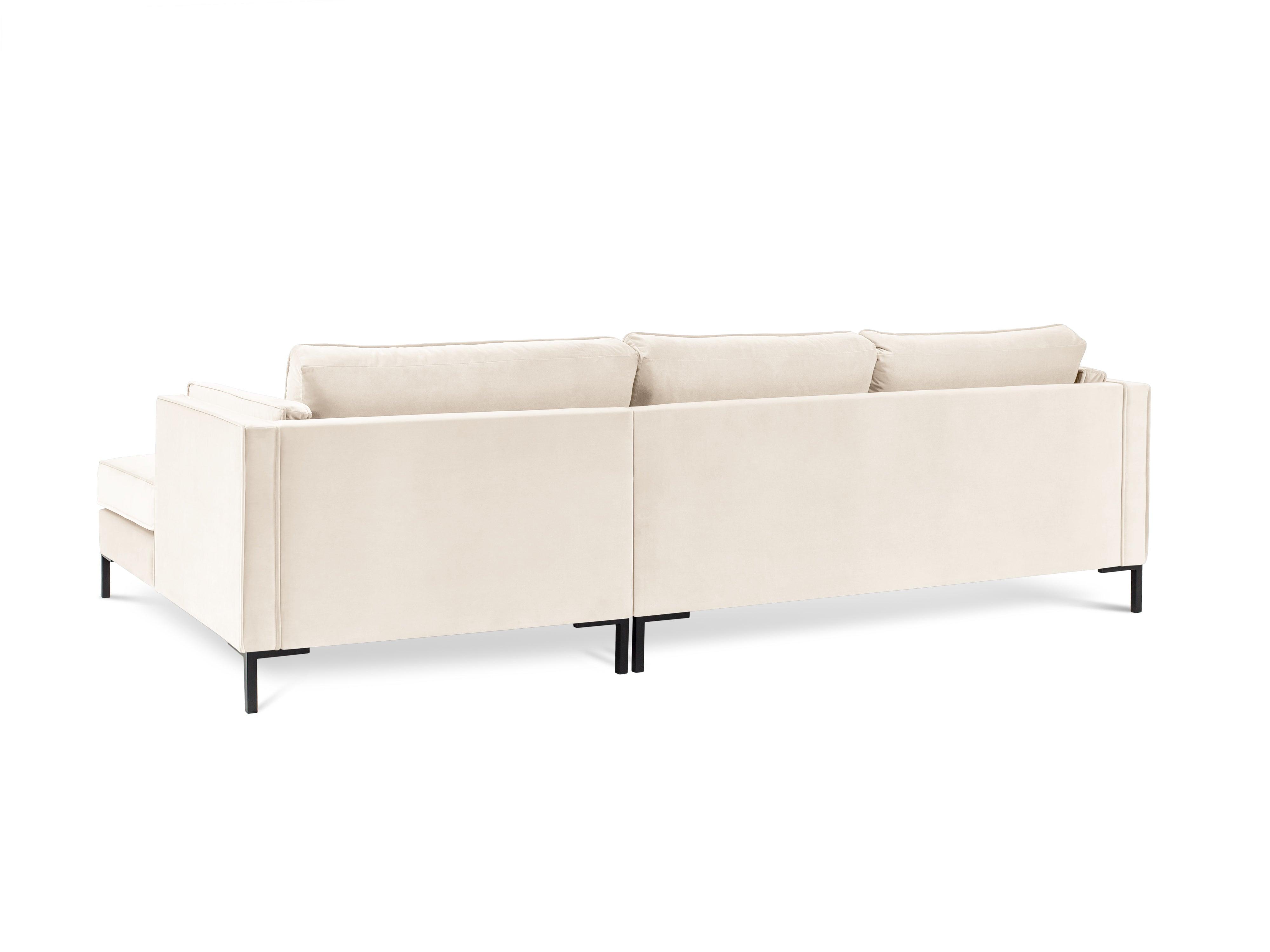 Svetlobežový pravý sametový rohový gauč LUIS s čiernym podstavcom