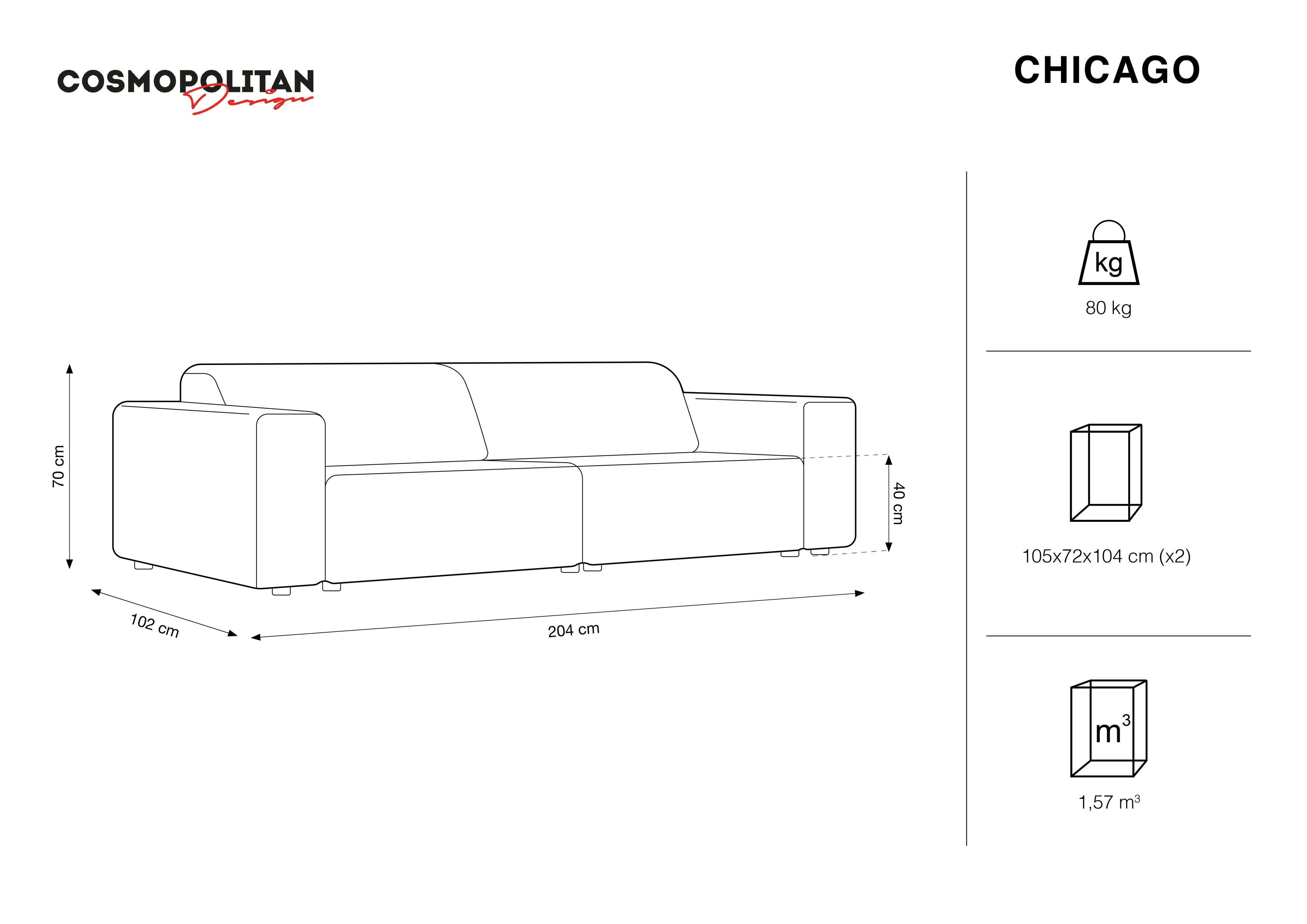Sametová pohovka Chicago sa vyznačuje výnimočným dizajnom, kde jemne prešívané sedadlá a početné prešívania na operadlách dodávajú celku rafinovaný vzhľad. Nízka, rozľahlá forma vyžaruje mimoriadny šarm, dokonale podčiarkujúc štýl obývacej izby. Elastické, hlboké sedadlá s bohatým vypĺňaním zaručujú nielen komfort, ale aj úplný relax po náročnom dni.