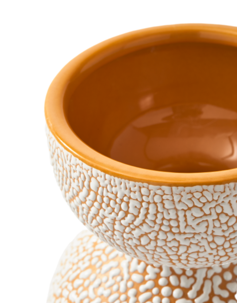 Objavte vázu Boolb Dots – skutočnú explóziu bodiek a tvarov. Každý kus je jedinečný, pretože neexistujú dva rovnaké vzory. Tajomstvo Boolba spočíva v inovatívnej technike glazúrovania „crawling glaze“, vďaka ktorej každá bodka získava trojrozmernú hĺbku a textúru. Lesklé prvky na matnom pozadí vytvárajú mimoriadne vizuálne a hmatové dojmy, priťahujú pohľad a povzbudzujú k interakcii.