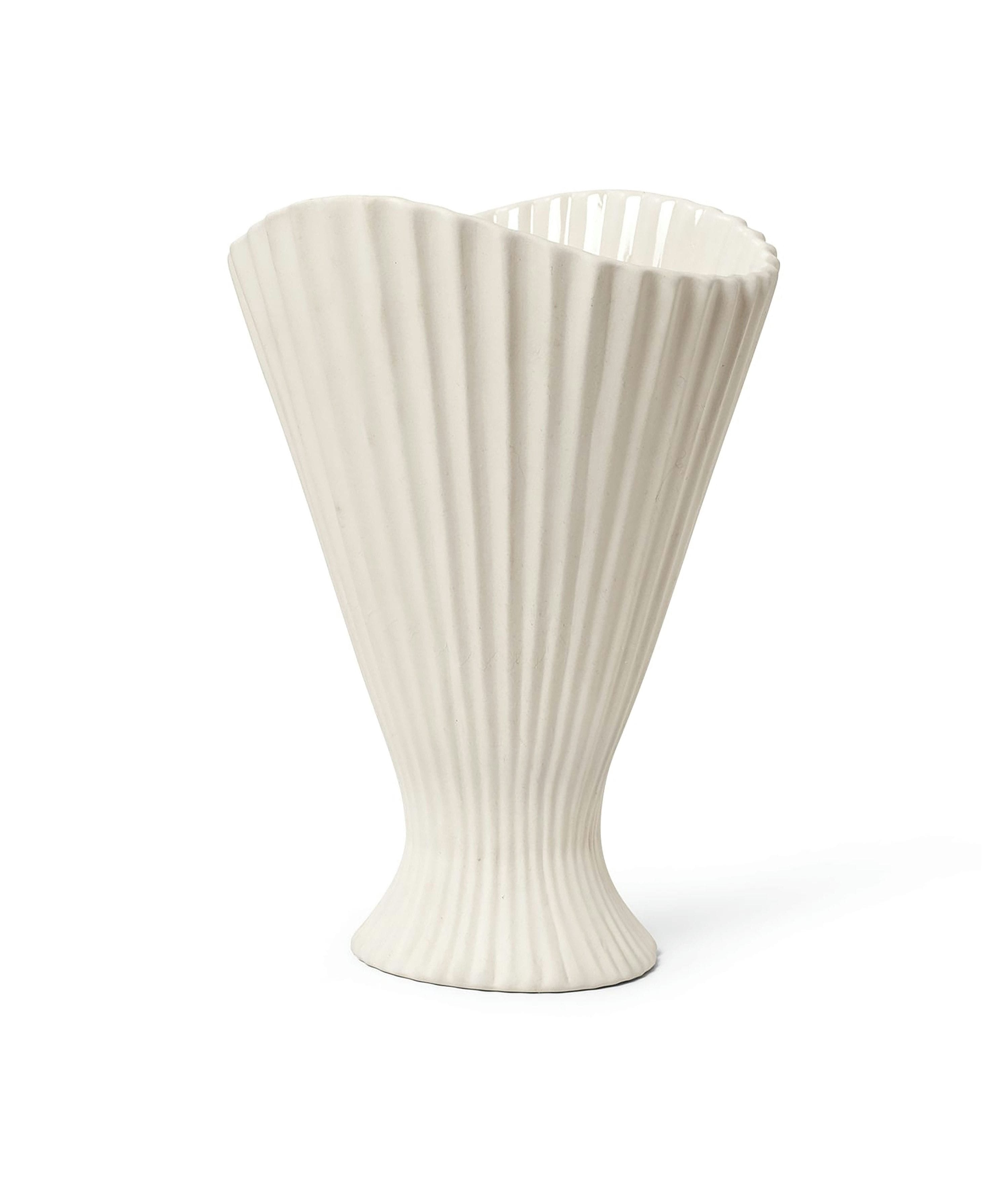 Váza Fountain je elegantná, sochárska forma inšpirovaná klasickým tvarom fontán, ktorá okamžite pritiahne pozornosť svojím jemným, plisovaným výrazom. Vyrobená z keramiky, váza Fountain sa vyznačuje matným povrchom zvonka a priehľadnou glazúrou vo vnútri, čo jej dodáva estetický aj funkčný charakter.