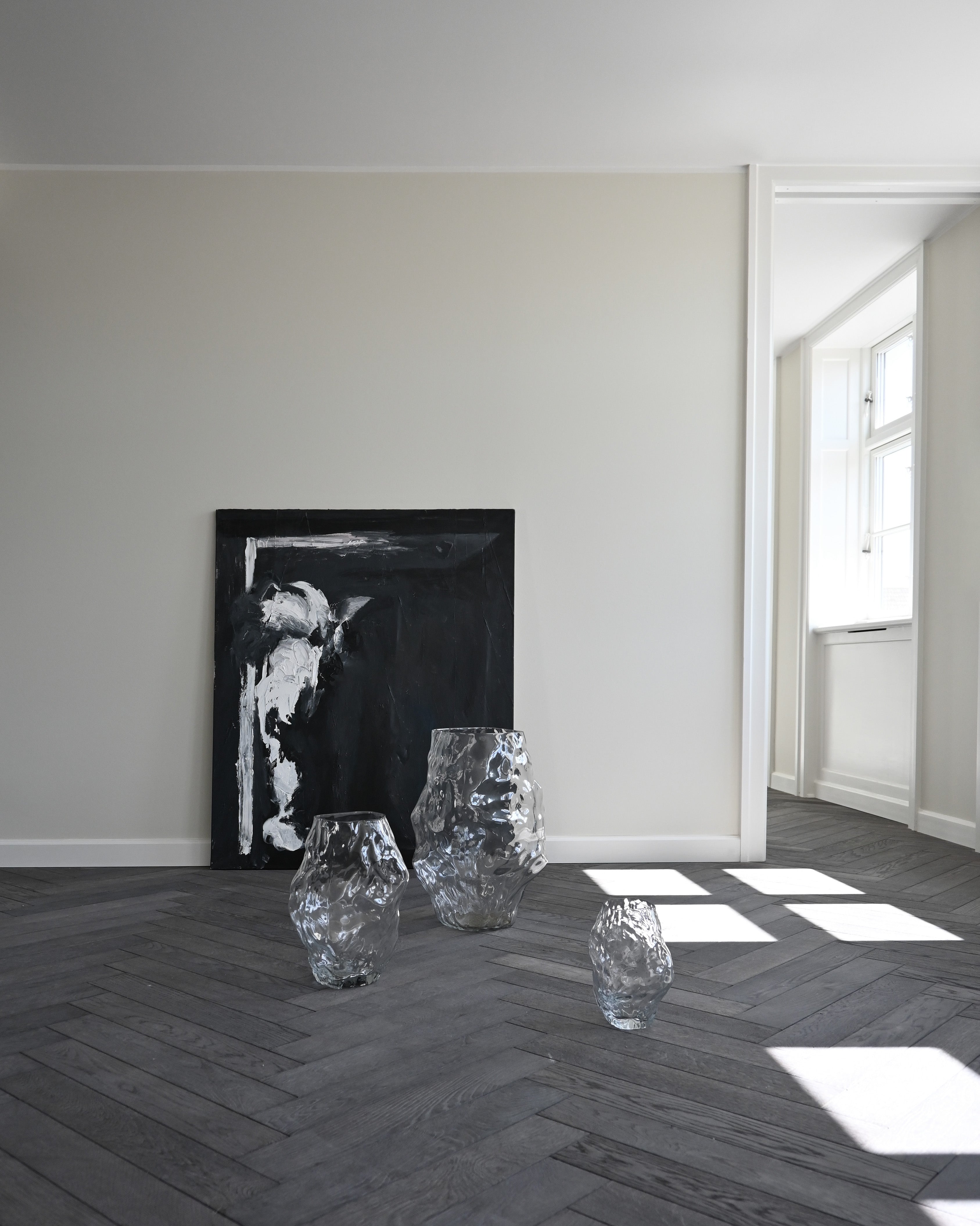 Dostępny w trzech rozmiarach, wazon Katachi w szklanej odsłonie oferuje nowe podejście do klasycznej formy – staje się niemal świetlną strukturą, która wpisuje się zarówno w spokojne, jak i nowoczesne aranżacje. Przezroczystość materiału pozwala subtelnie łączyć go z otoczeniem, tworząc płynną relację między światłem, cieniem a przestrzenią. Każdy z trzech rozmiarów może funkcjonować niezależnie lub jako część większej kompozycji – całość inspirowana japońskim rozumieniem estetyki jako równowagi między naturą a formą.