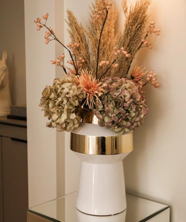 Váza Object v bielej farbe predstavuje spojenie elegancie a minimalizmu. Klasická biela sa dokonale spája s lesklými, zlatými prvkami, ktoré sa vyznačujú na pozadí iných podobných produktov. Subtílny, hoci pôsobivý vzhľad dokonale odráža charakter tohto objektu, pričom mu dodáva nezvyčajný nádych. Hladký, bielo-zlatý glazúra zdôrazňuje kvalitu dizajnu, zatiaľ čo tvar zvýrazňuje jemné remeselné spracovanie použité pri jeho vytváraní.