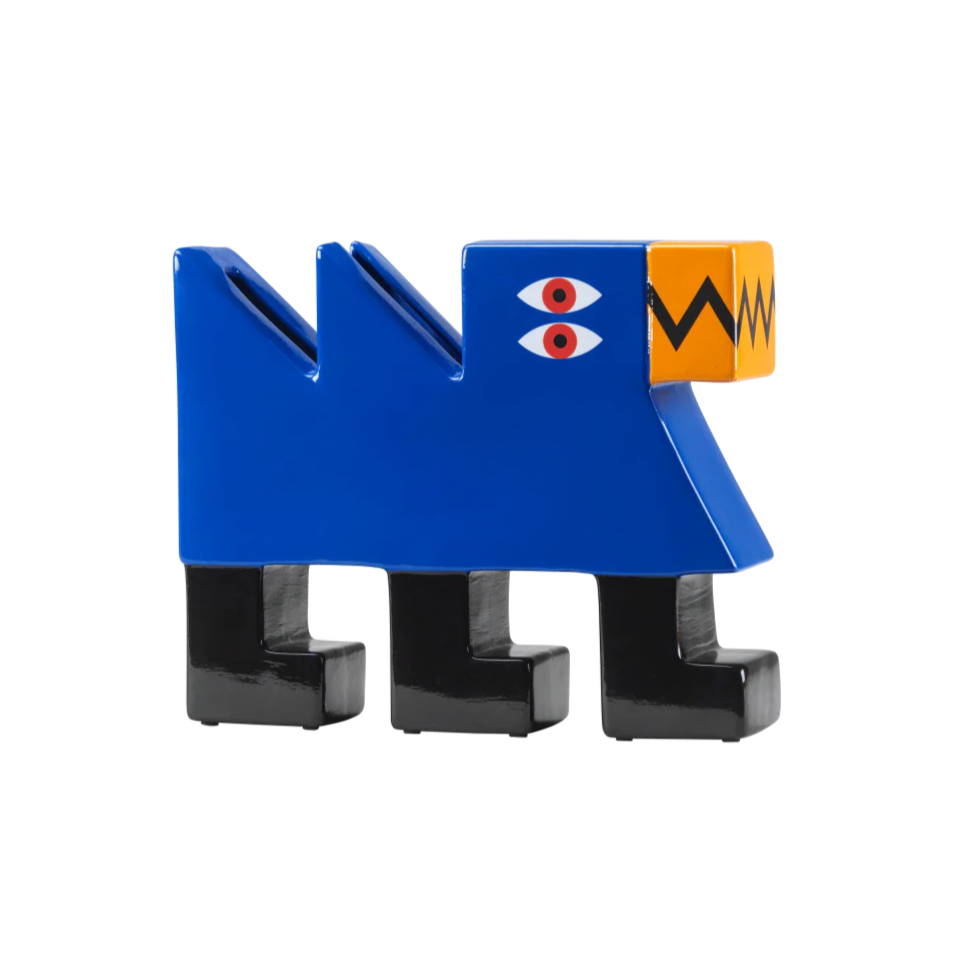Štyri vázy, ktoré zobrazujú rôzne zvieratá, udržiavané v živých farbách a geometrických prvkoch. Modrá váza v tvare ťavy, ktorá určite pritiahne pozornosť a stane sa výnimočným akcentom vo Vašom interiéri.