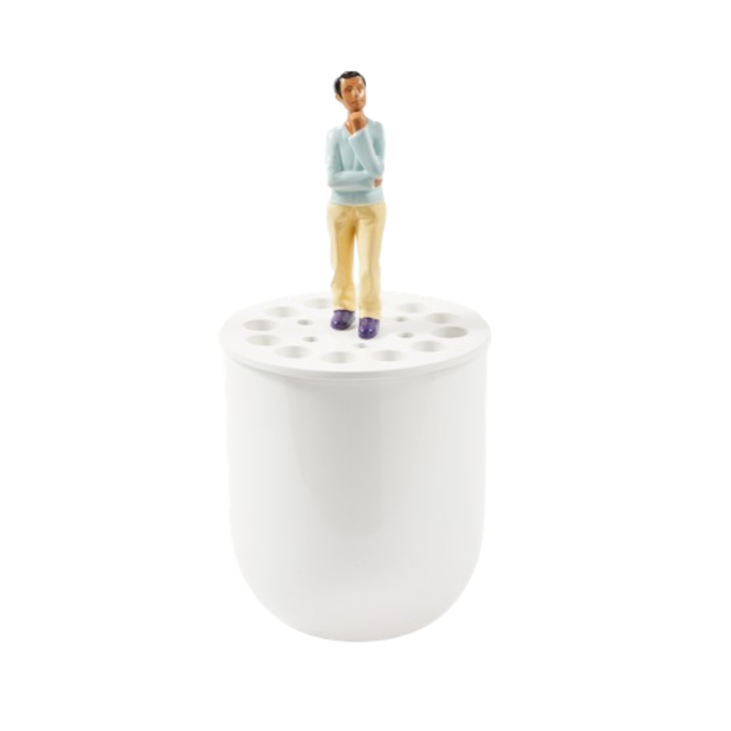 Váza Small Bird je súčasná interpretácia klasického dizajnu, ktorá vznikla z inšpirácie motívmi vtákov zo 17. storočia objavenými v Rijksmuseum. Tradičná forma bola vedome preškálovaná, pokrytá glazúrou a obohatená o charakteristický, odvážny akcent POLSPOTTEN, čím vznikol objekt balansujúci medzi históriou a moderným dizajnom. Je to malá forma s veľkou osobnosťou, ktorá priťahuje pozornosť a vnáša do interiéru nádych humoru a umeleckej voľnosti.