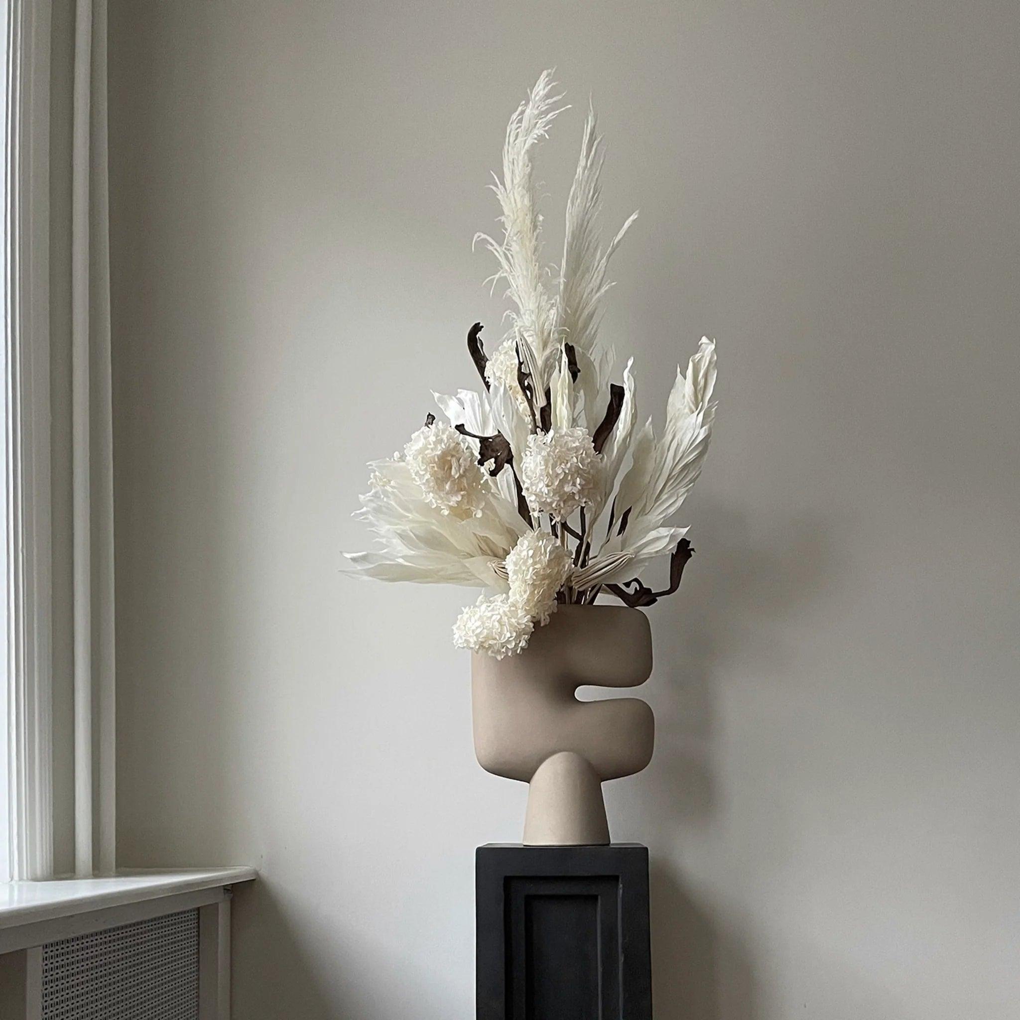 Rovnako ako otvorené ústa na podstavcoch, masky sú predmetom s krásnym tvarom v pokojnej, upokojujúcej a jemne zaprášenej farbe terakoty a šedej. Keďže ide o prírodný produkt, ručne glazovaný, farby sa môžu mierne líšiť.