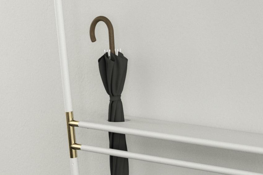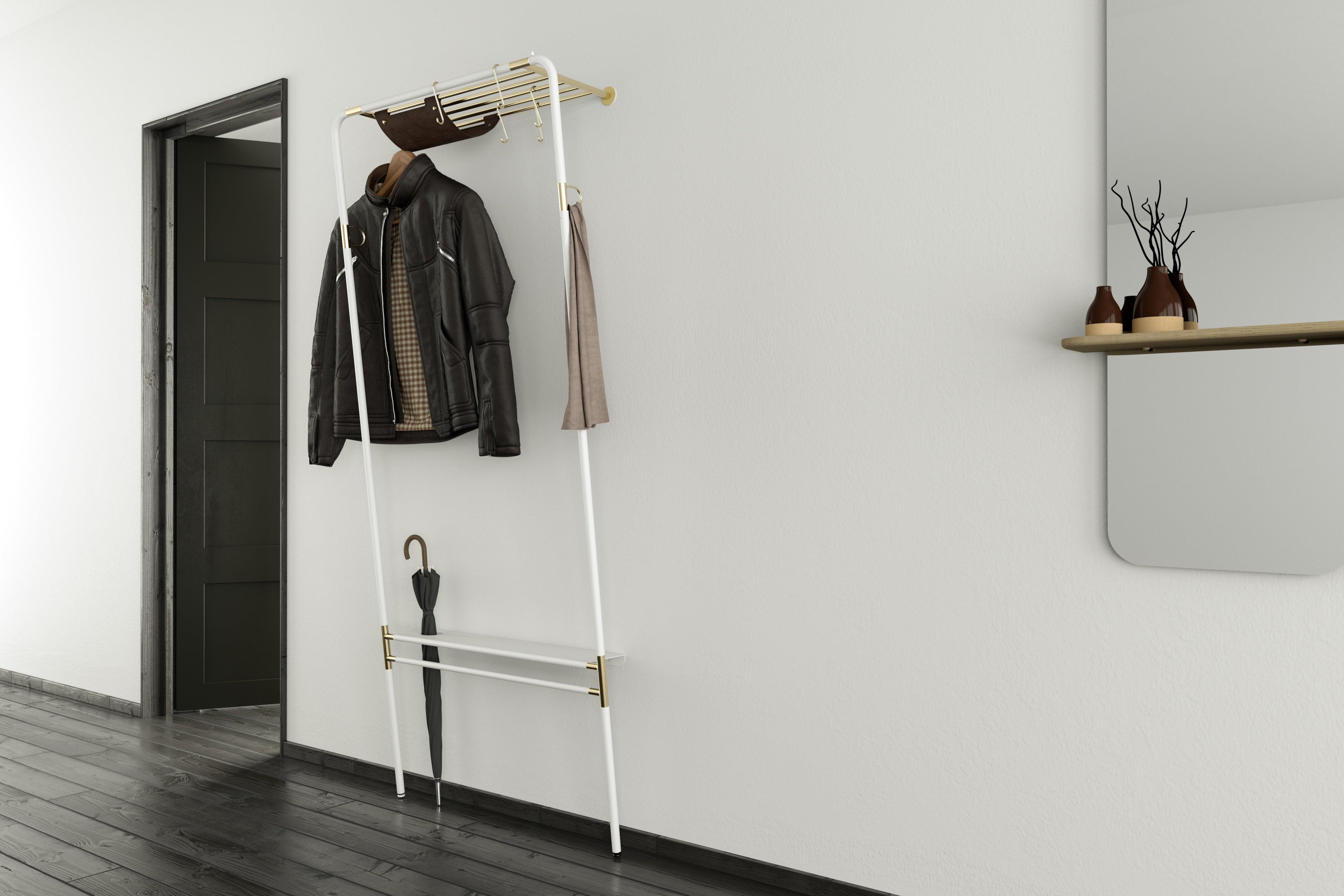 Vešiak na oblečenie Lean On Me bol navrhnutý tak, aby umožnil pohodlné uskladnenie všetkých potrebných vecí vonku, pričom maximálne využíva dostupný priestor. Jeho inovatívny dizajn mu umožňuje opierať sa pod uhlom o stenu na spodnej časti, čo znamená, že zaberá minimálne miesto na podlahe.