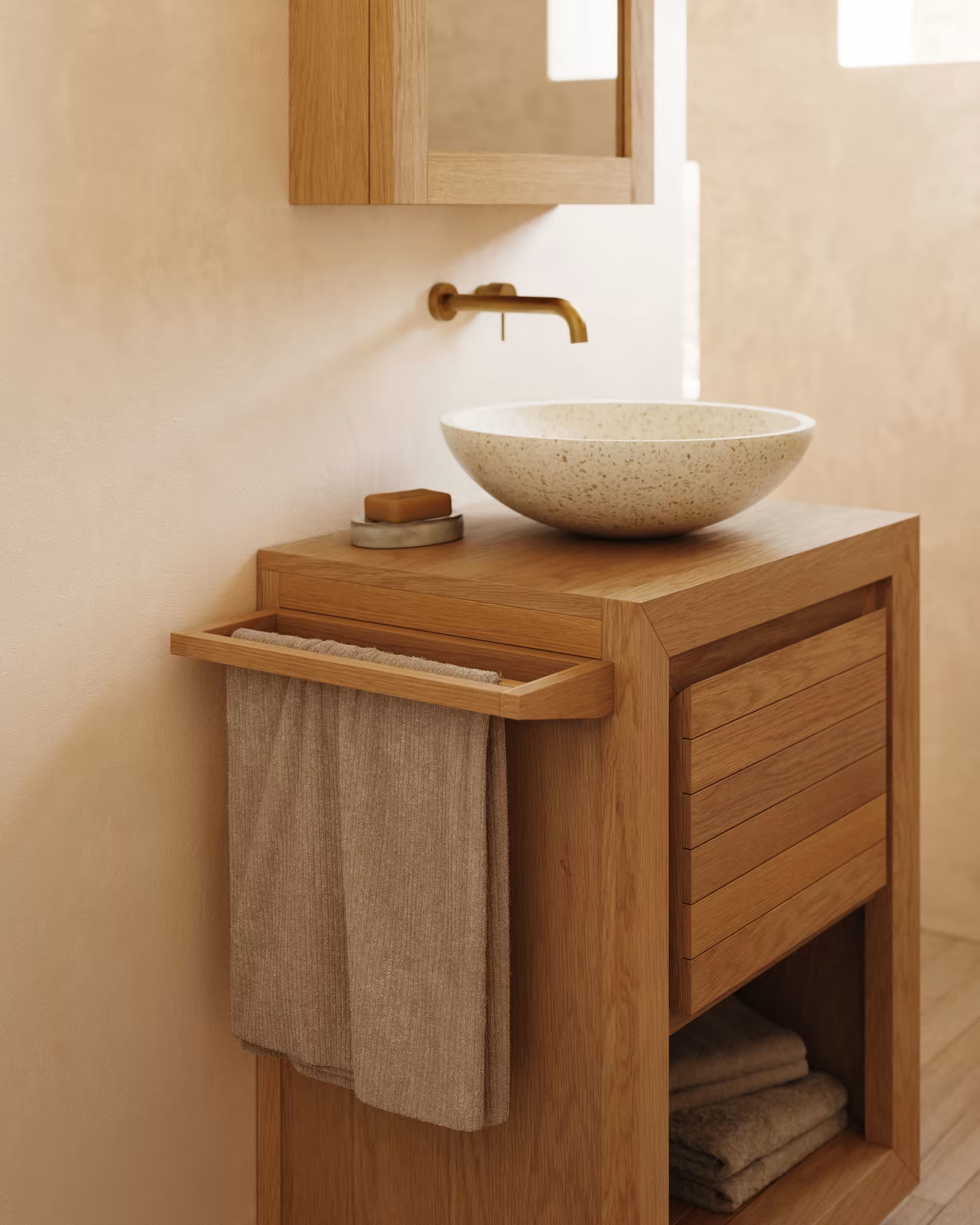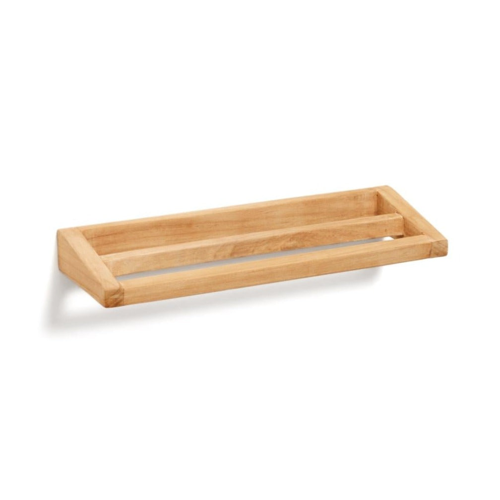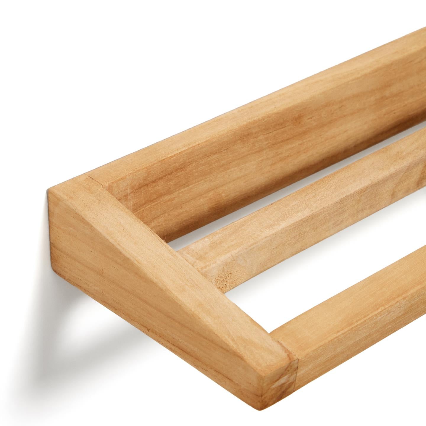 Vešiak na uteráky Vedel to funkčný a estetický vešiak na uteráky vyrobený z masívneho teakového dreva, ktorý prináša do kúpeľne prirodzené teplo a nadčasový štýl. Vďaka využitiu kvalitného materiálu vešiak vyniká trvanlivosťou a odolnosťou voči vlhkosti, čo z neho robí ideálnu voľbu do kúpeľňového priestoru.