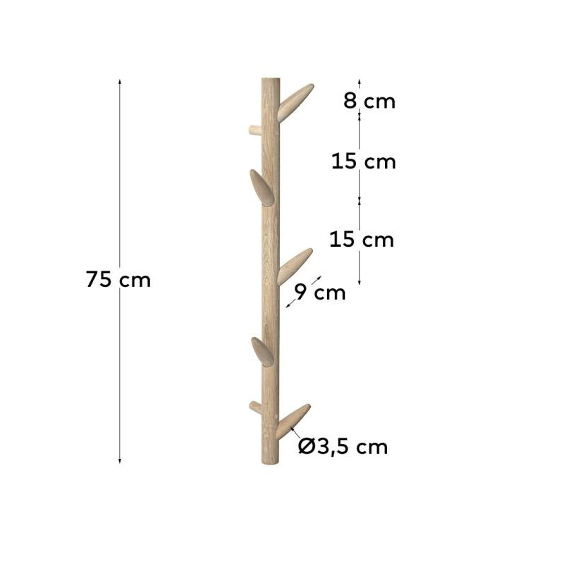 Vešiak na stenu Natane nie je len praktickým organizačným riešením, ale aj vyjadrením jemnej elegancie a funkčného dizajnu. Vyrobený z masívneho brezového dreva, tento originálny vešiak v zvislej polohe prináša harmóniu a ľahkosť do vášho interiéru, pričom slúži ako efektívne miesto na uskladnenie doplnkov.