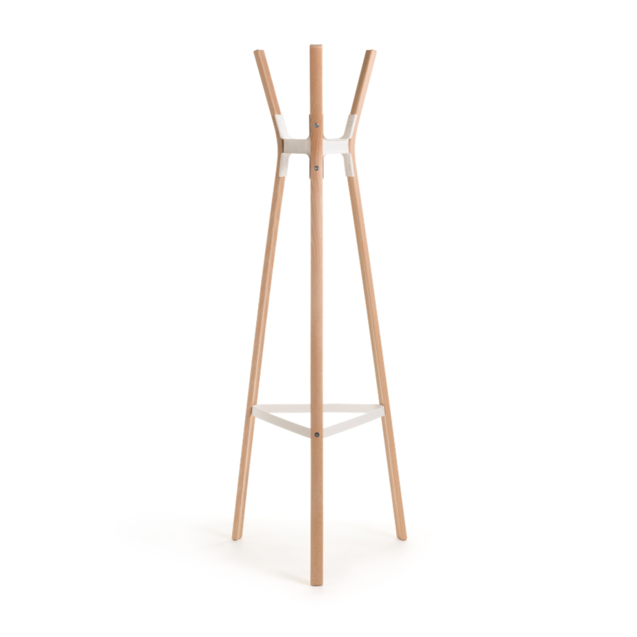 Steelwood to elegantný a minimalistický podlahový vešiak, navrhnutý duom Ronan & Erwan Bouroullec. Kombinácia teplého dreva s natretou oceľou dodáva projektu moderný, a zároveň nadčasový charakter. Konštrukcia spočíva na troch štíhlych nohách, ktoré jemne rozširujú smerom nahor, čím vytvárajú stabilné a funkčné miesto na zavesenie kabátov, búnd či tašiek. Celok pôsobí ľahkým dojmom a dokonale sa hodí do domácich, kancelárskych či hotelových priestorov.
