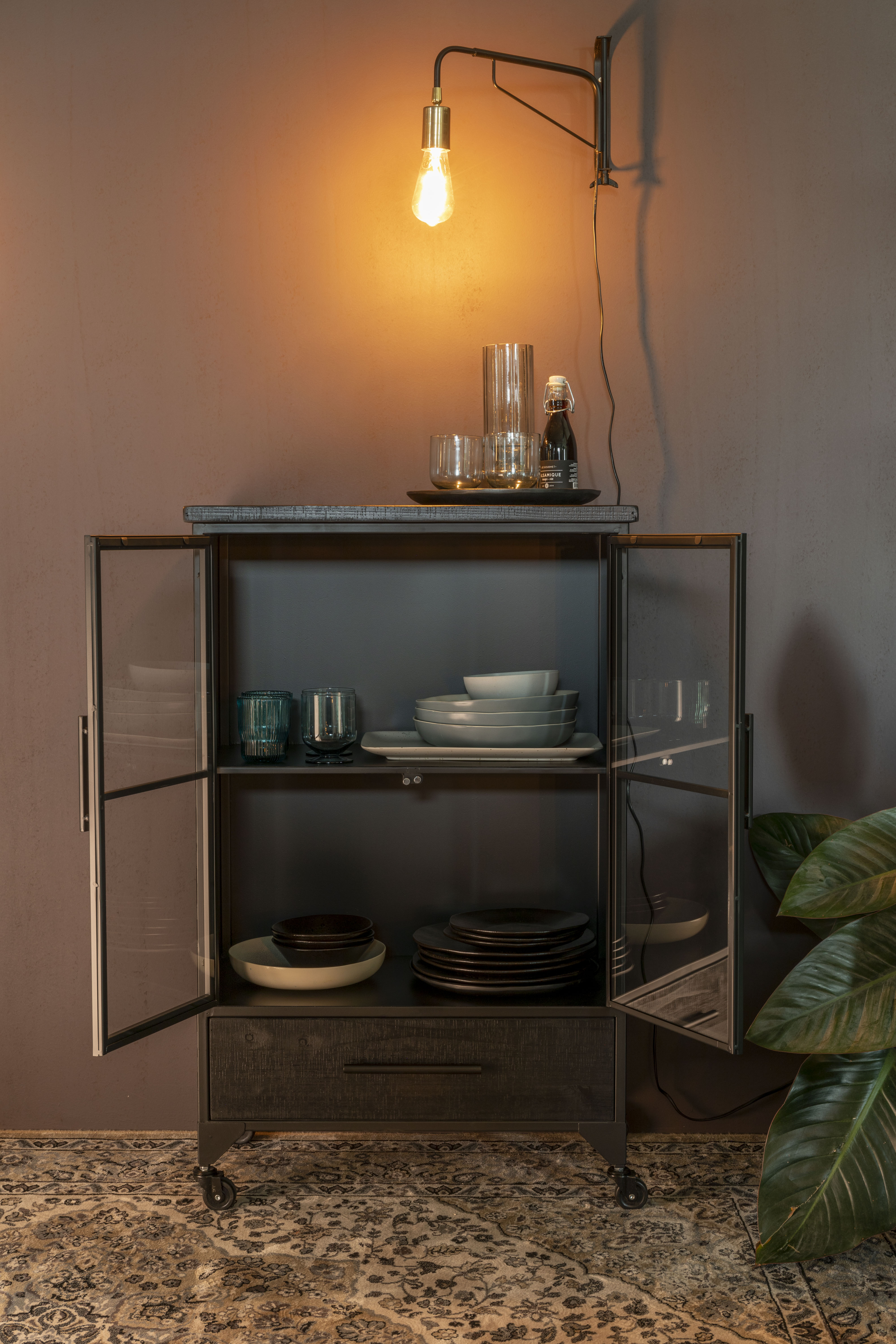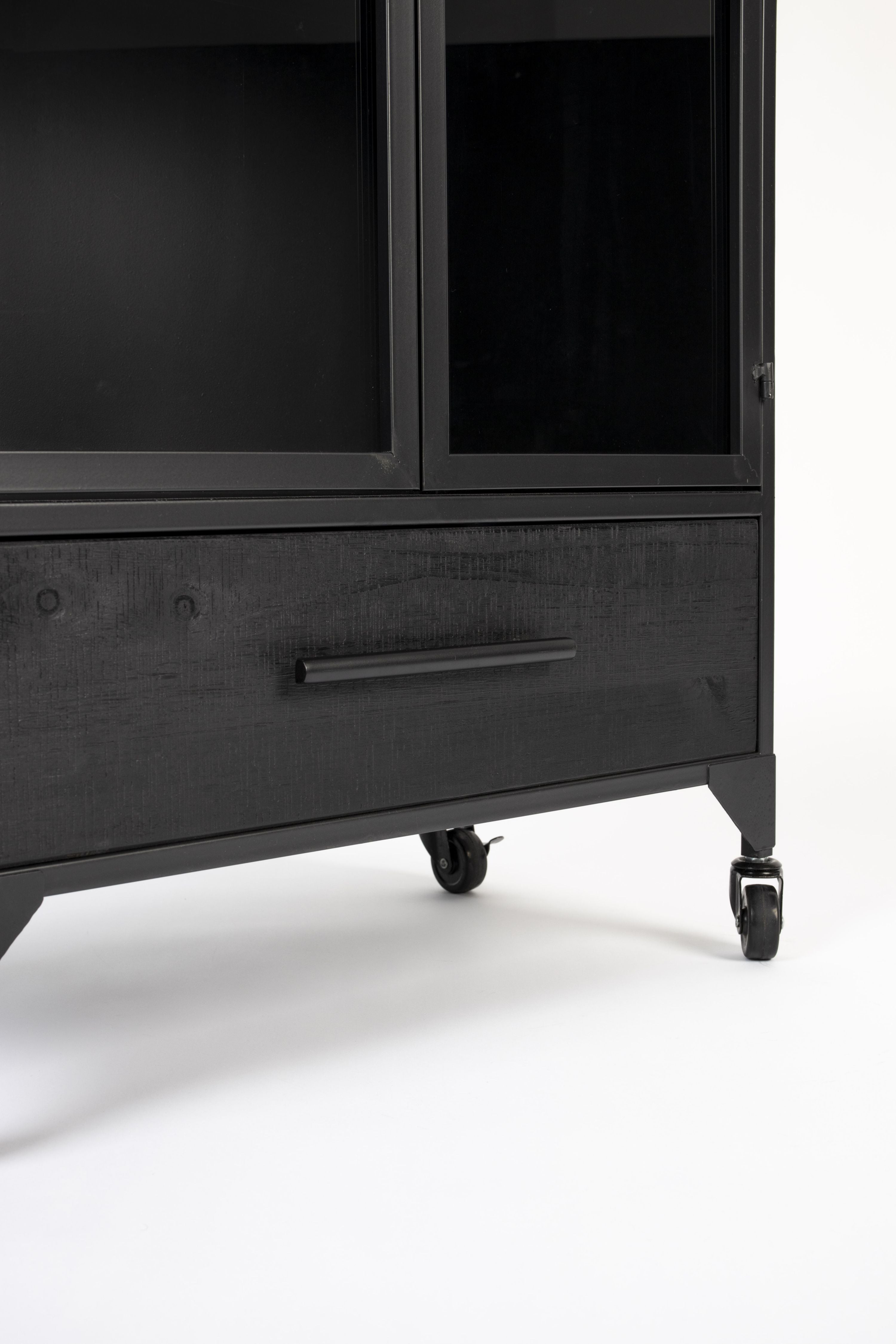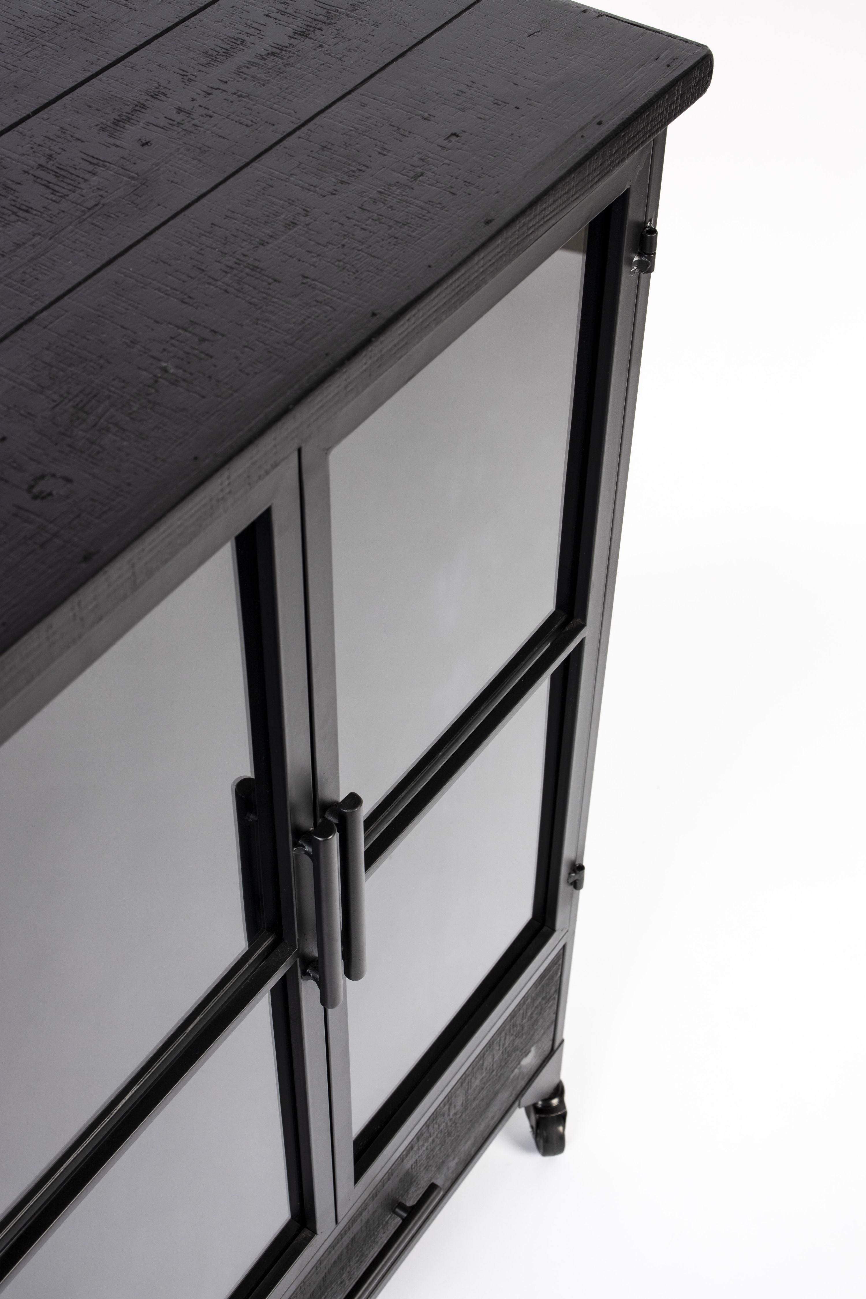 Čierna 2-dverová vitrína na kolieskach FERRE