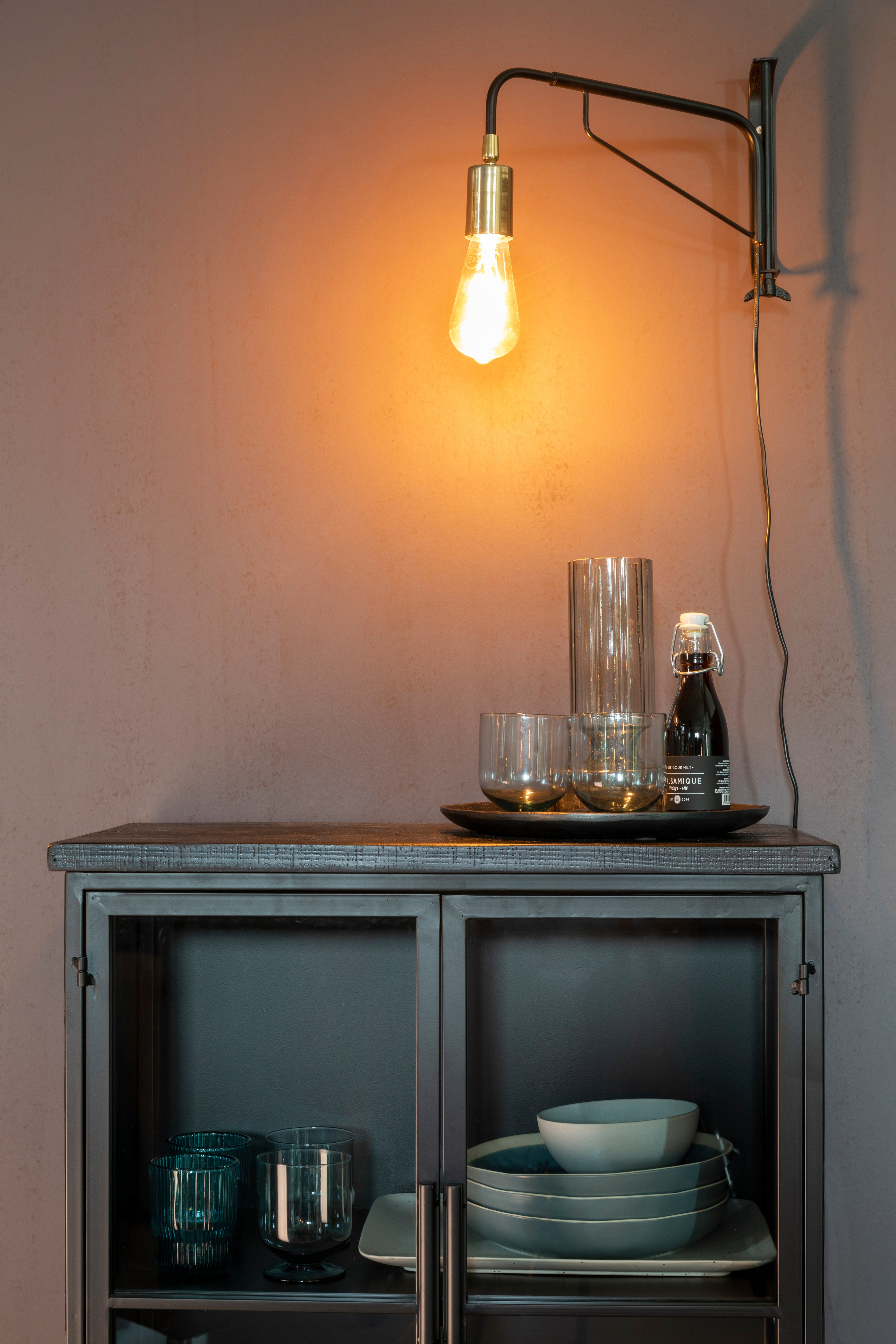 Vitrína Ferre je spojenie klasiky, funkčnosti a elegancie, ideálne pre tých, ktorí hľadajú praktické miesto na uskladnenie a štýlový dekoratívny prvok. Čierny nábytok sa vyznačuje výraznosťou a triedou, skvele sa hodí k rôznym štýlom interiérov, od moderných po klasické a industriálne. Vitrína je vyrobená z práškovo lakovaného železa, MDF dosky s dyhou z jedľového dreva a tvrdeného skla. Za priehľadnými dverami sa nachádzajú poličky ideálne na vystavovanie kníh, ozdôb, riadu alebo iných cenných predmetov. Navyše horná plocha vitríny môže slúžiť ako miesto na vystavovanie dekorácií alebo kvetov, a priestranná zásuvka na dne ponúka diskrétne miesto na uskladnenie. Vitrína Ferre je elegantný kus nábytku, ktorý dodáva charakter každému interiéru.
