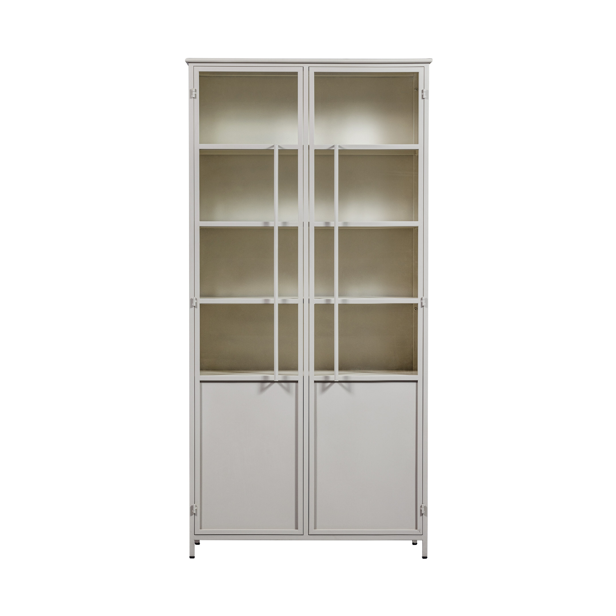 Vitrína Exhibit je robustný, štýlový kus nábytku s moderným vzhľadom, ktorý dokonale podčiarkne charakter Vášho interiéru. Celá je vyrobená z kovu a pokrytá módnym matným práškovým náterom, predstavuje elegantný a trvácny priestor na vystavovanie dekorácií, keramiky či kníh. Tri vysoké presklené dvere a štíhle úchyty jej dodávajú ľahkosť a industriálny charakter.