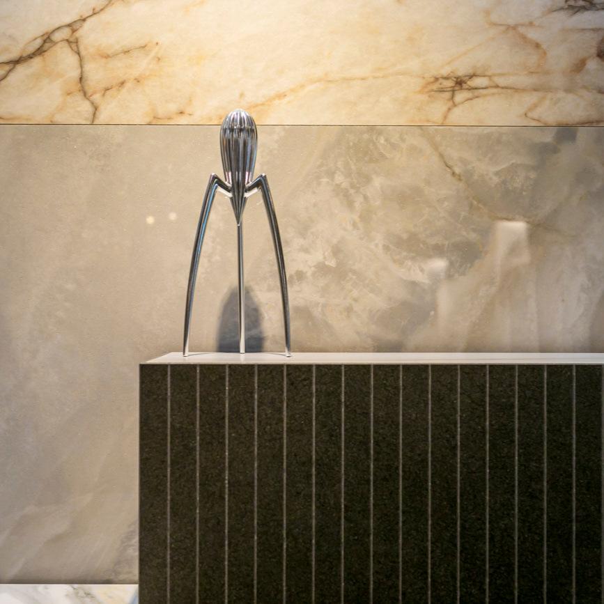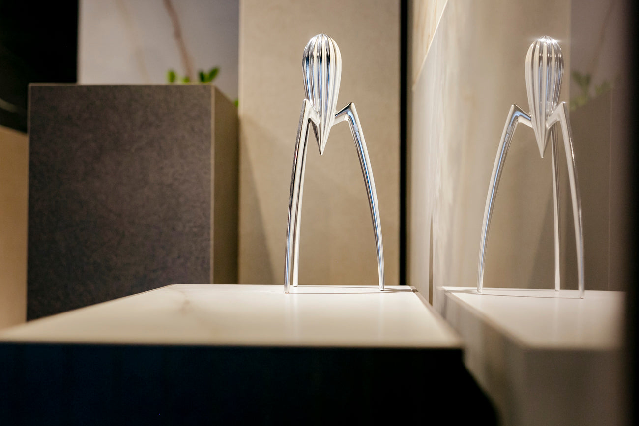Lis na citróny Juicy Salif je skutočná ikona dizajnu, ktorá upúta pozornosť svojím netradičným vzhľadom. Navrhnutý v roku 1990 Philippeom Starckom počas dovolenky v Taliansku, vznikol z inšpirácie tanierom s chobotnicou a citrónom. Starck ho načrtol na servítke v reštaurácii a konečný výsledok nie je len nástroj na lisovanie šťavy, ale aj socha, ktorá vzbudzuje záujem a provokuje diskusie. Juicy Salif prekonáva tradičné pravidlá dizajnu, spájajúc funkciu s formou spôsobom, ktorý nemožno prehliadnuť.