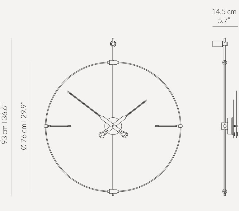 Dopracované proporcie a vznešené materiály robia z týchto dizajnových stenných hodín harmonické spojenie funkčnosti a dekoratívnej formy. Presný nemecký mechanizmus UTS zaručuje spoľahlivosť na roky, a elegantná konštrukcia robí z stenných hodín v mini verzii výrazný, no subtílny akcent interiéru.